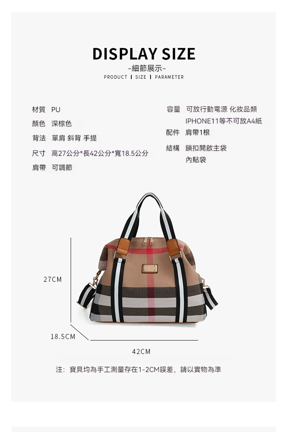 👜容量:可放A4、iPad、長夾及其他隨身物品