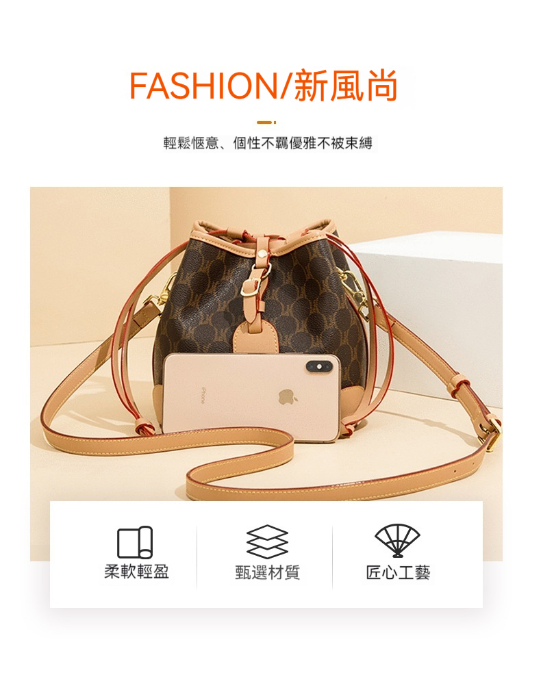 👜結構:主袋、內貼袋、拉鍊內貼袋,附可調式長背帶