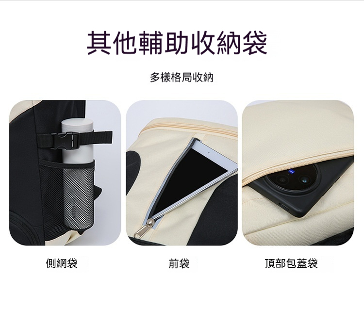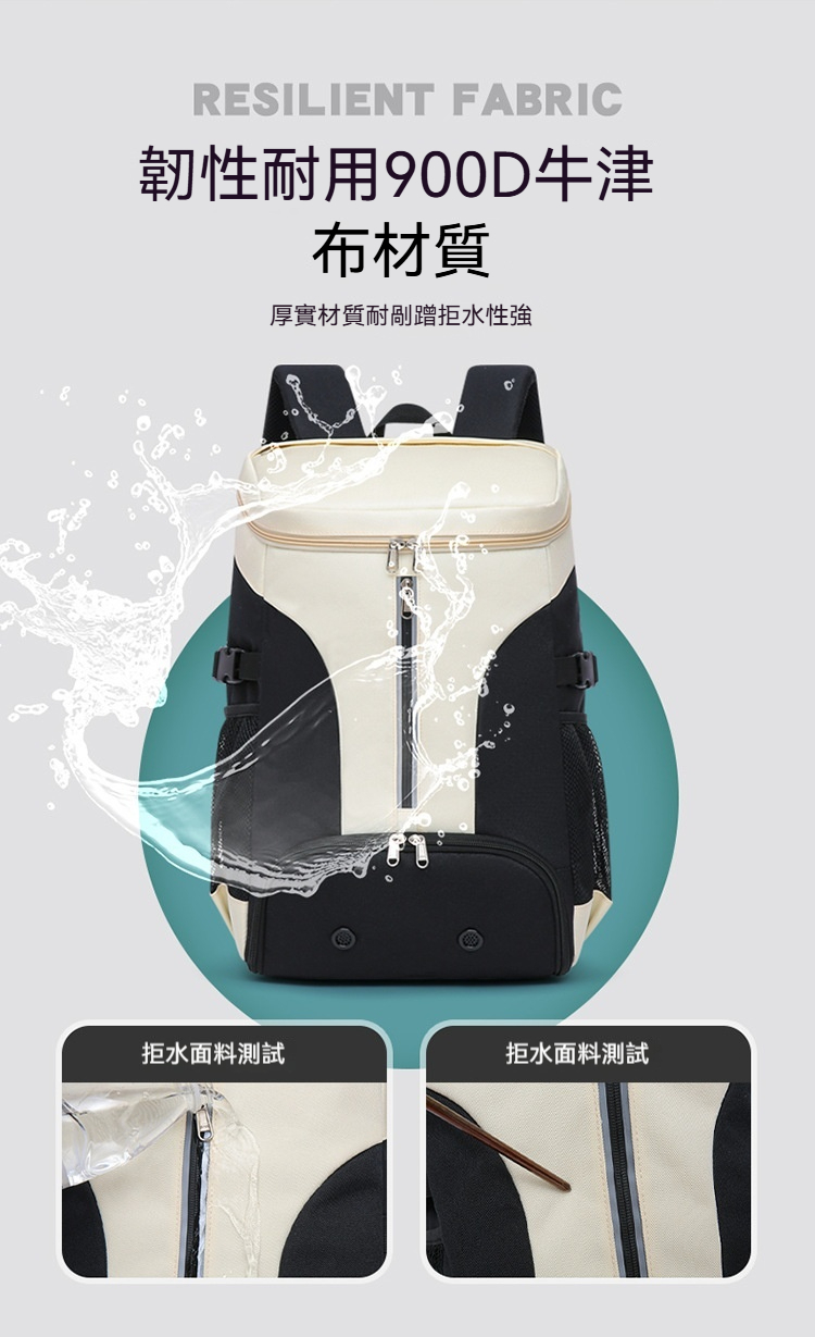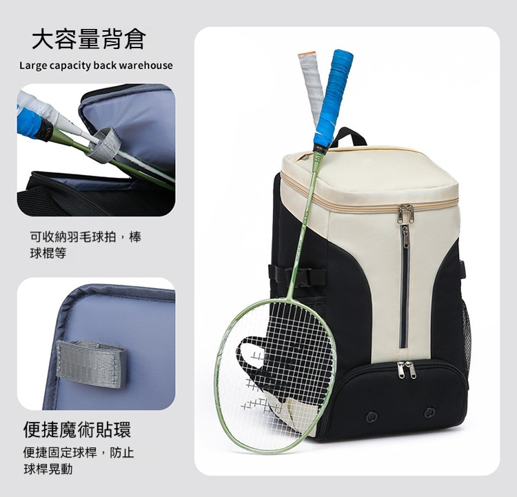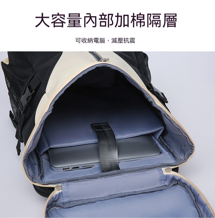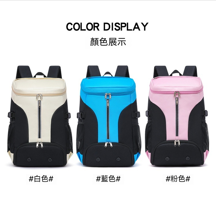 👜結構:主袋、緩衝隔層、上蓋拉鍊袋、前置拉鍊鞋倉、前幅拉鍊袋、兩側插袋、副袋