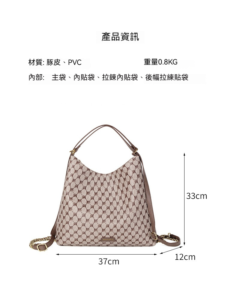 👜結構:主袋、內貼袋、拉鍊內貼袋、後幅拉練貼袋