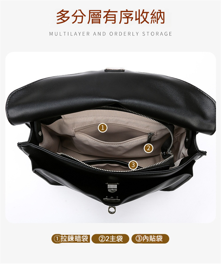 👜結構:主袋、內貼袋、拉鍊內貼袋、前置袋