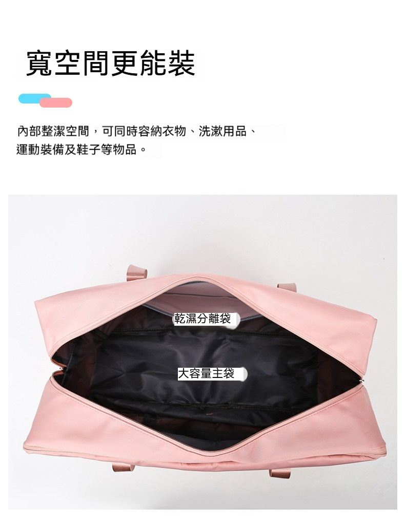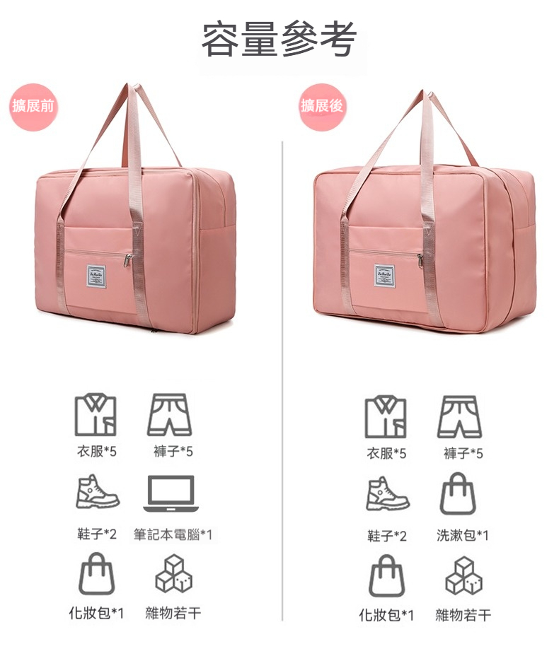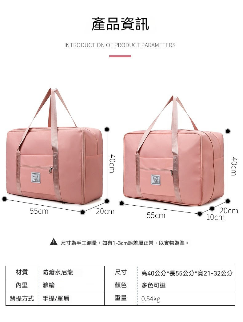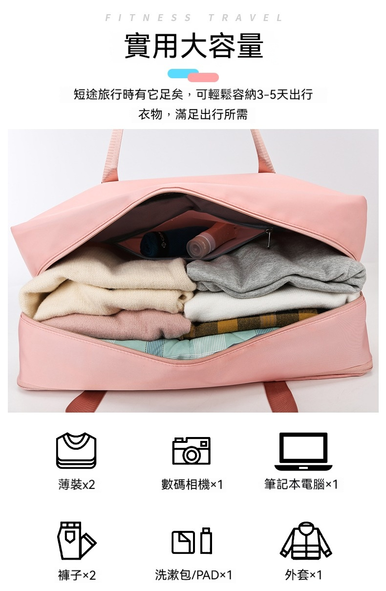 👜容量:可放A4、iPad、其他隨身物品或一人三天兩夜行李