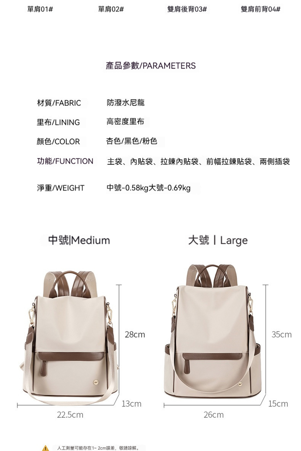 👜容量:大號可放A4、iPad、長夾及其他隨身物品