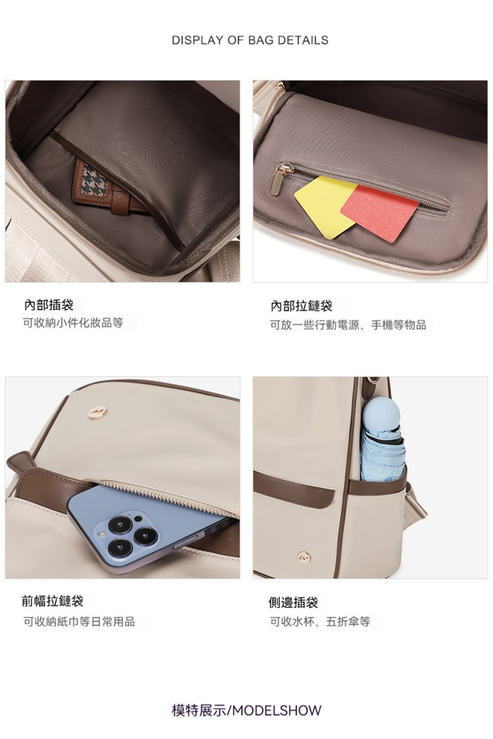👜結構:主袋、內貼袋、拉鍊內貼袋、前幅拉鍊貼袋、兩側插袋