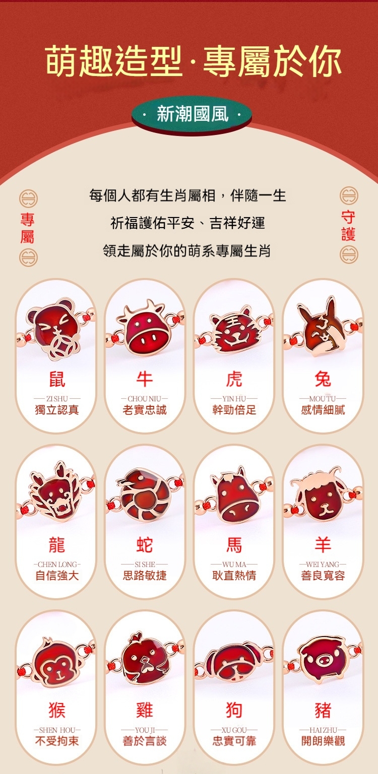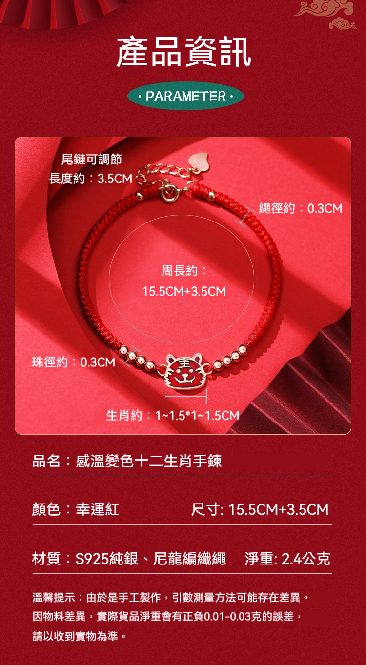 👜商品尺吋:手鍊15.5CM+3.5CM、珠徑3MM、生肖約1~1.5*1~1.5CM
