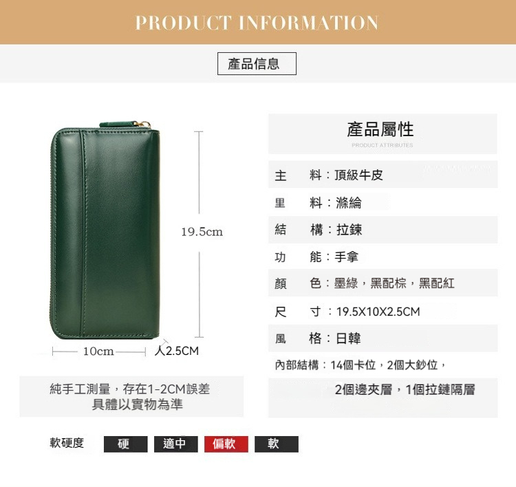 👜容量:可放5.5寸手機、千元大鈔、14張卡片及一些票據