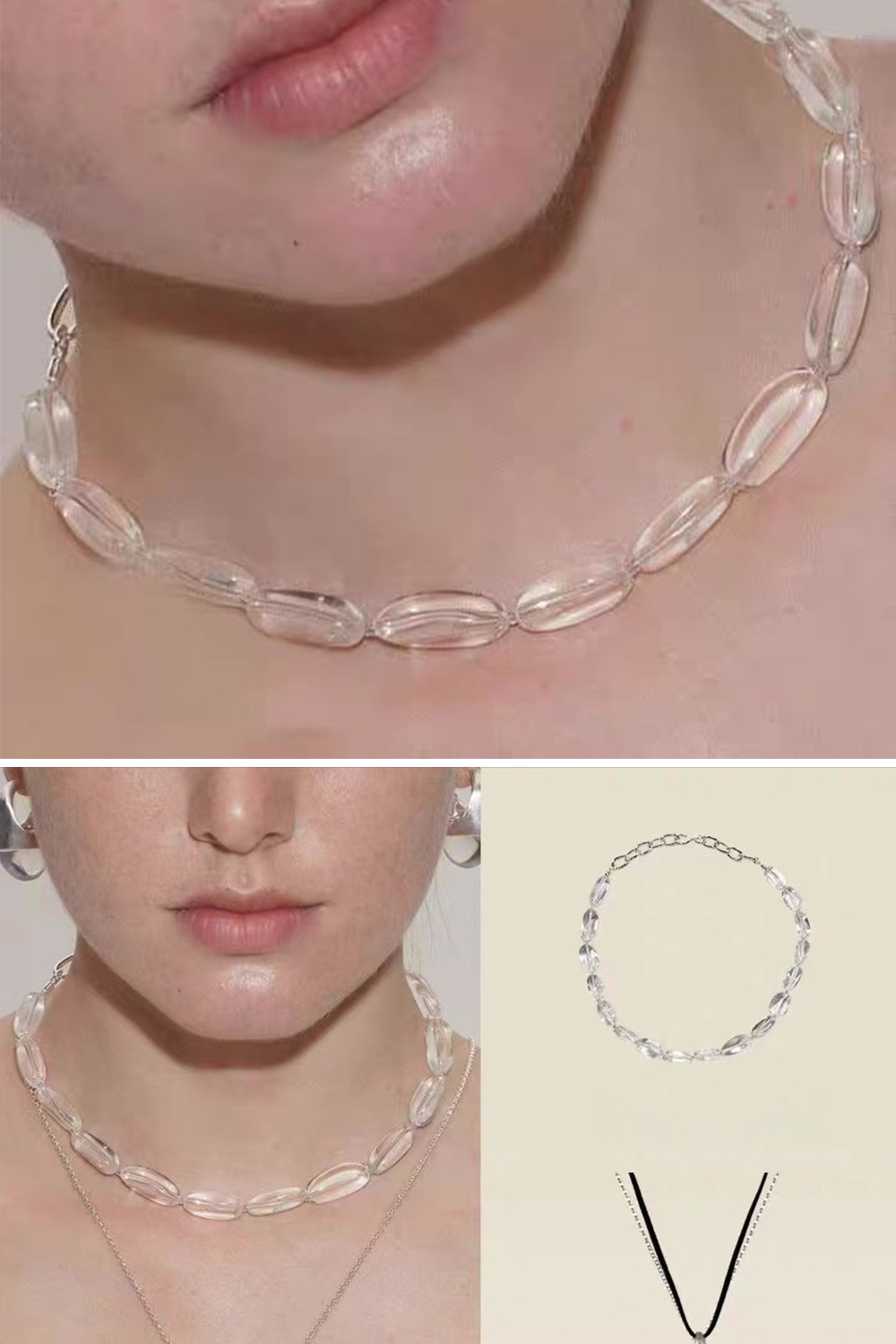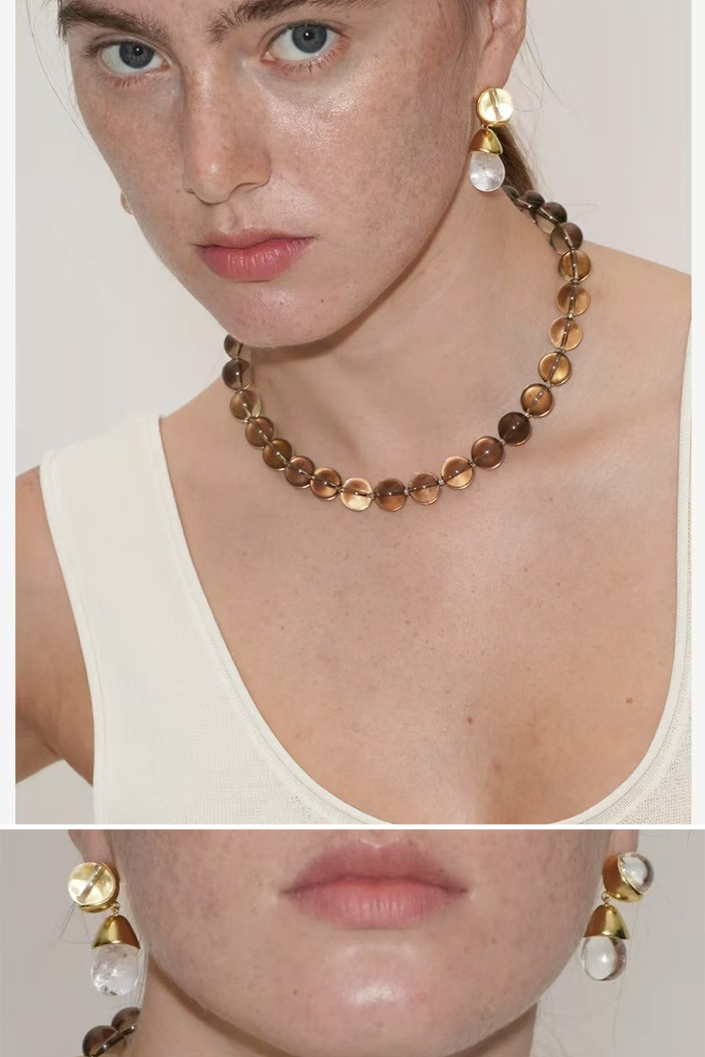 ✨ 商品尺吋:黃水晶項鍊-全長47+5CM加長鍊、串珠約7MM、 白水晶項鍊-全長約46CM、串珠1*2CM、耳釘-全長3.5VM、寬1.2CM