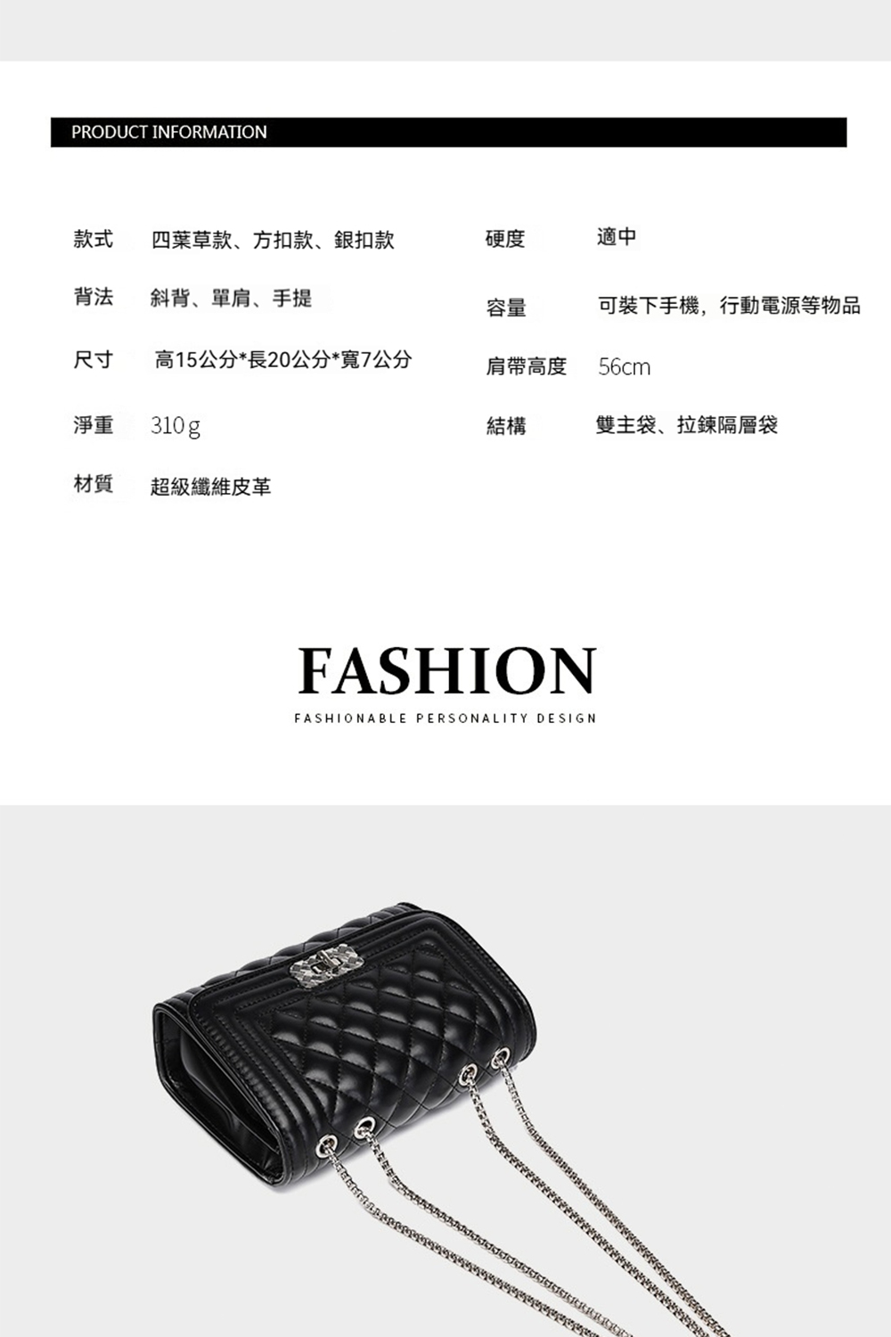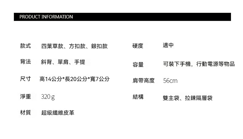 👜重量:四葉草款0.37公斤、方扣款0.32公斤、銀扣款0.31公斤