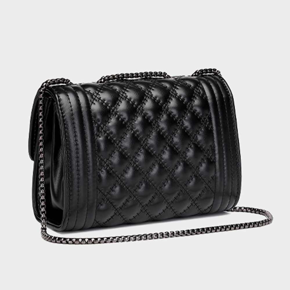 菱格鏈條包 單肩斜背包 小方包 方胖包 包包 斜背包 鍊條包 菱格紋包包 小香風包包 黑色包包 四葉草包包 禮物 870
