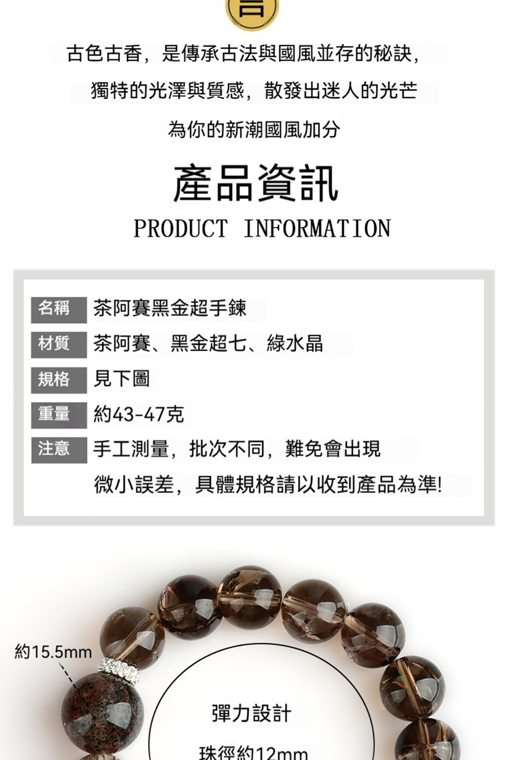 👜 商品尺吋:小珠徑約12mm,大珠徑約15.5mm,手圍約17公分