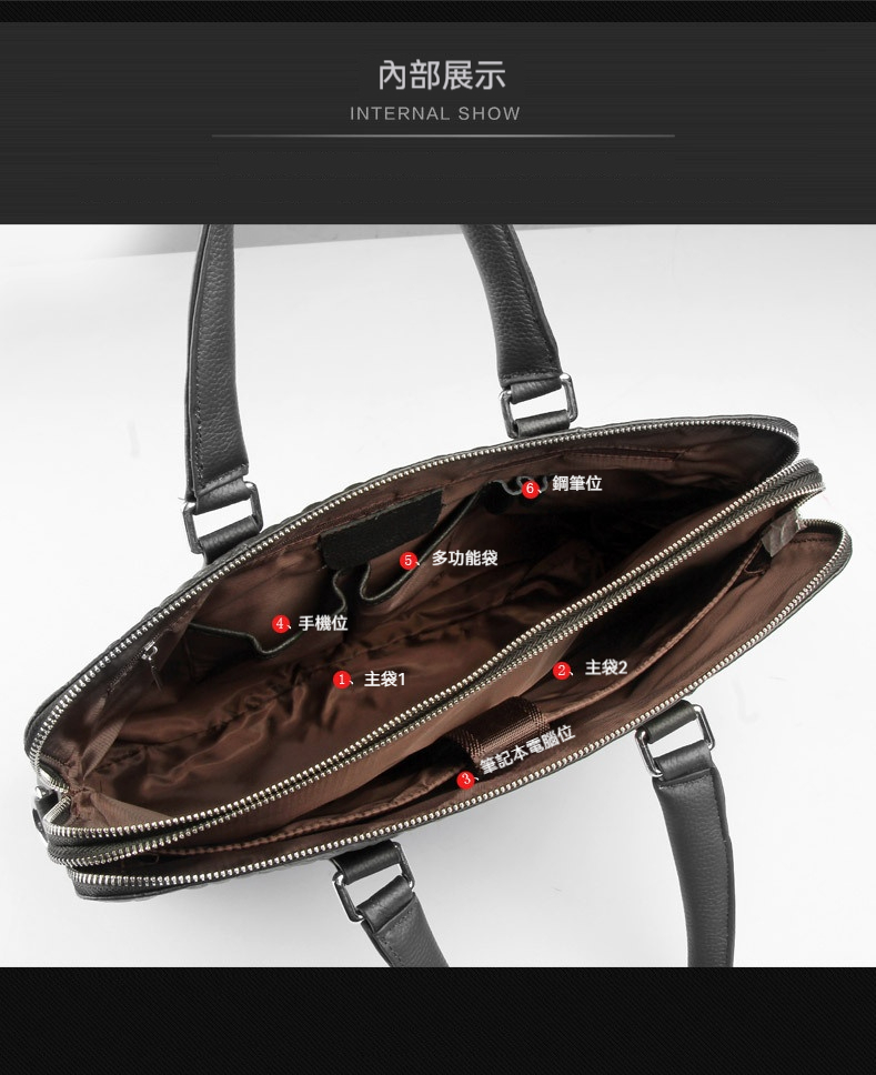 👜結構:雙主袋、內貼袋*2、筆插*2、拉鍊內貼袋、筆電隔層