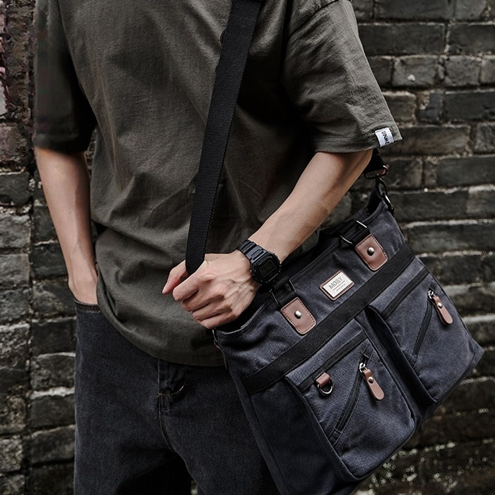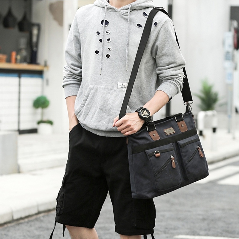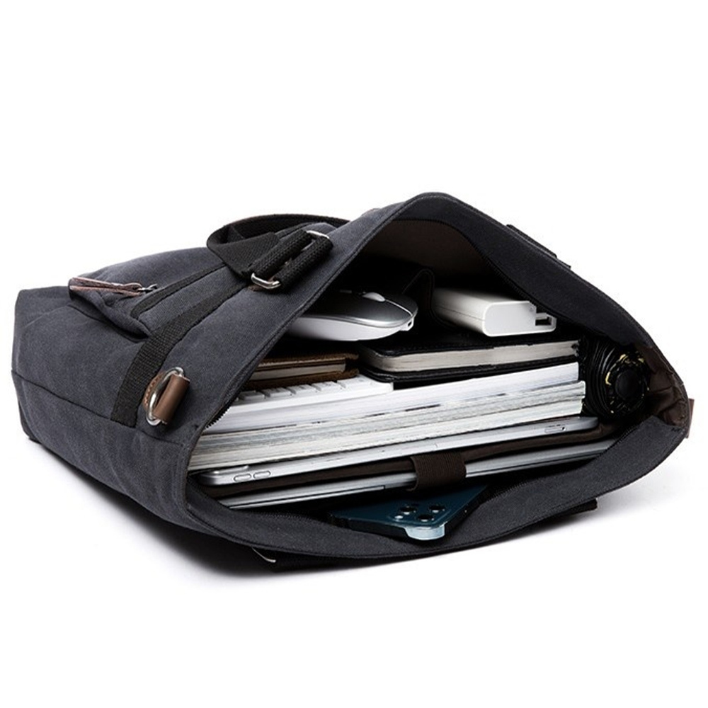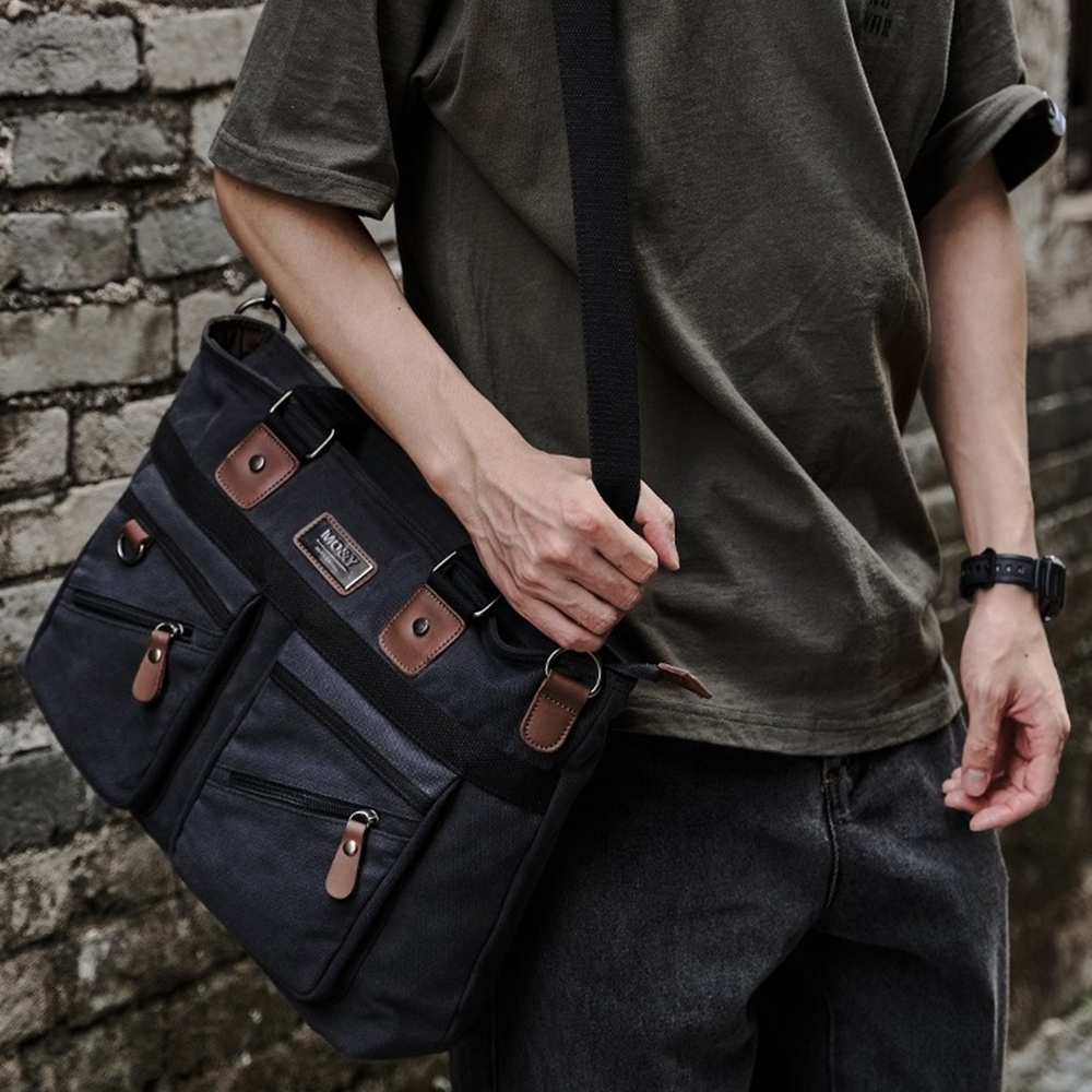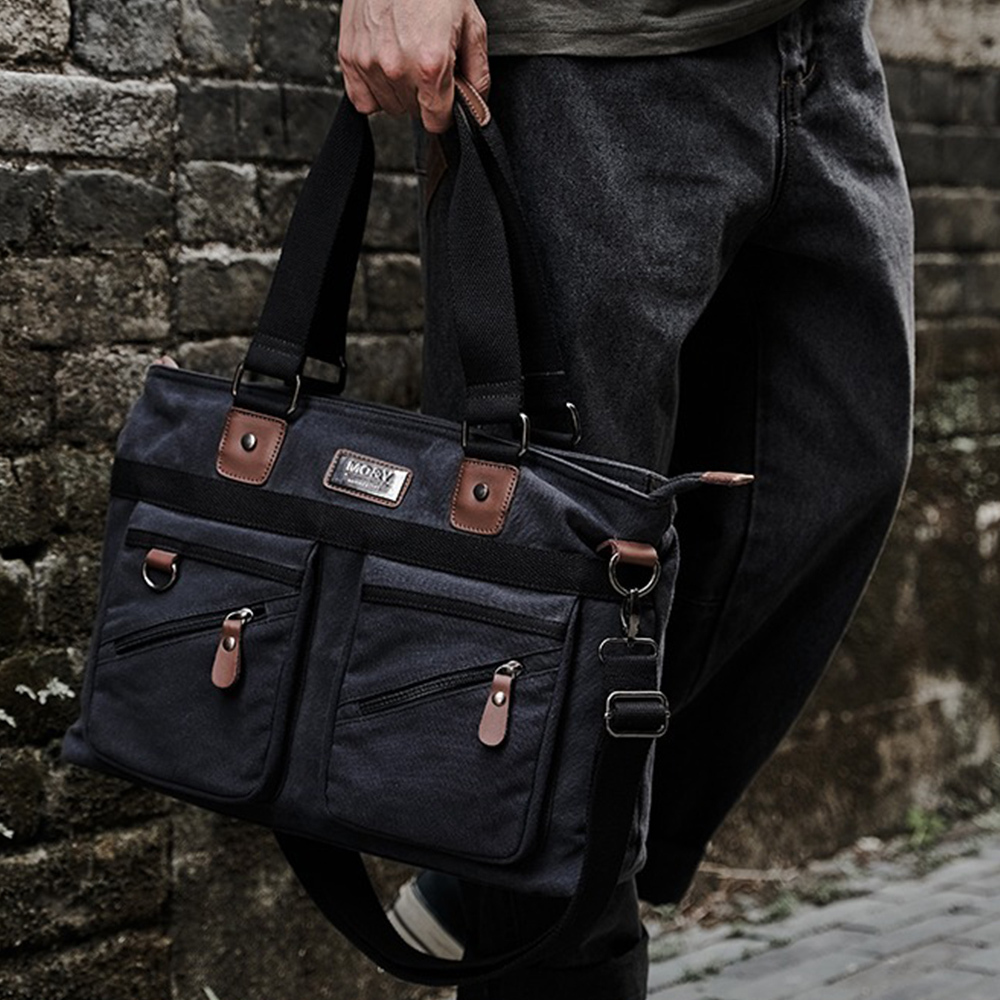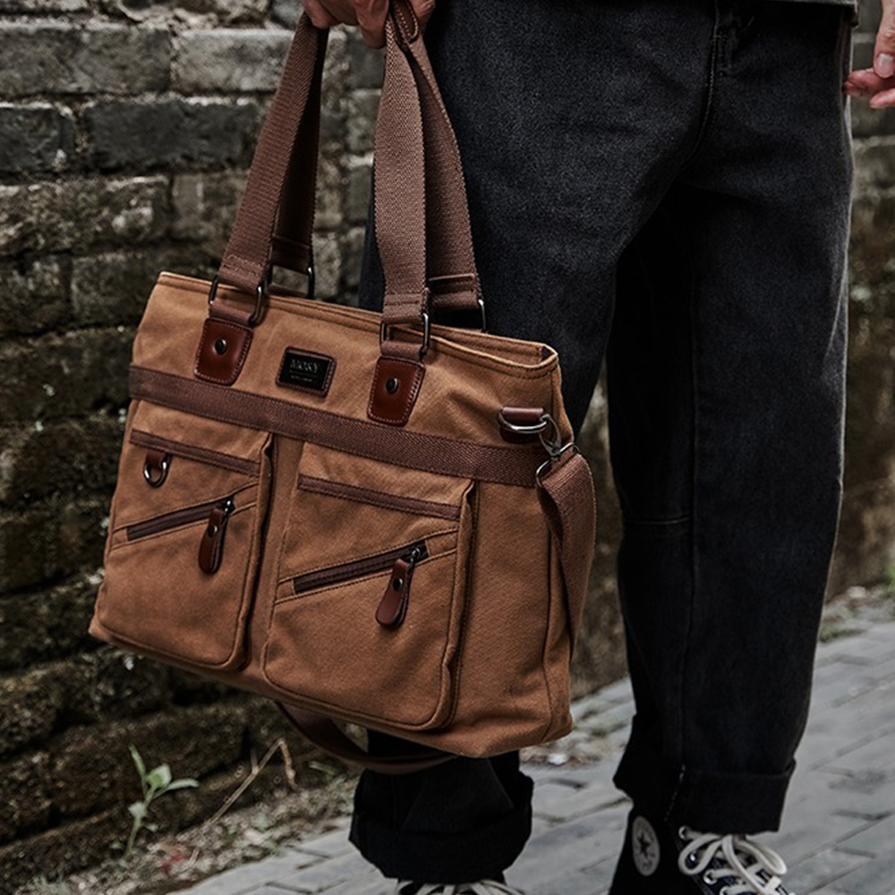 包包 手提包 電腦包 帆布手提包 工裝包 帆布包 休閒單肩包 黑色帆布包 商務手提包 公事包 14寸電腦包 禮物 372