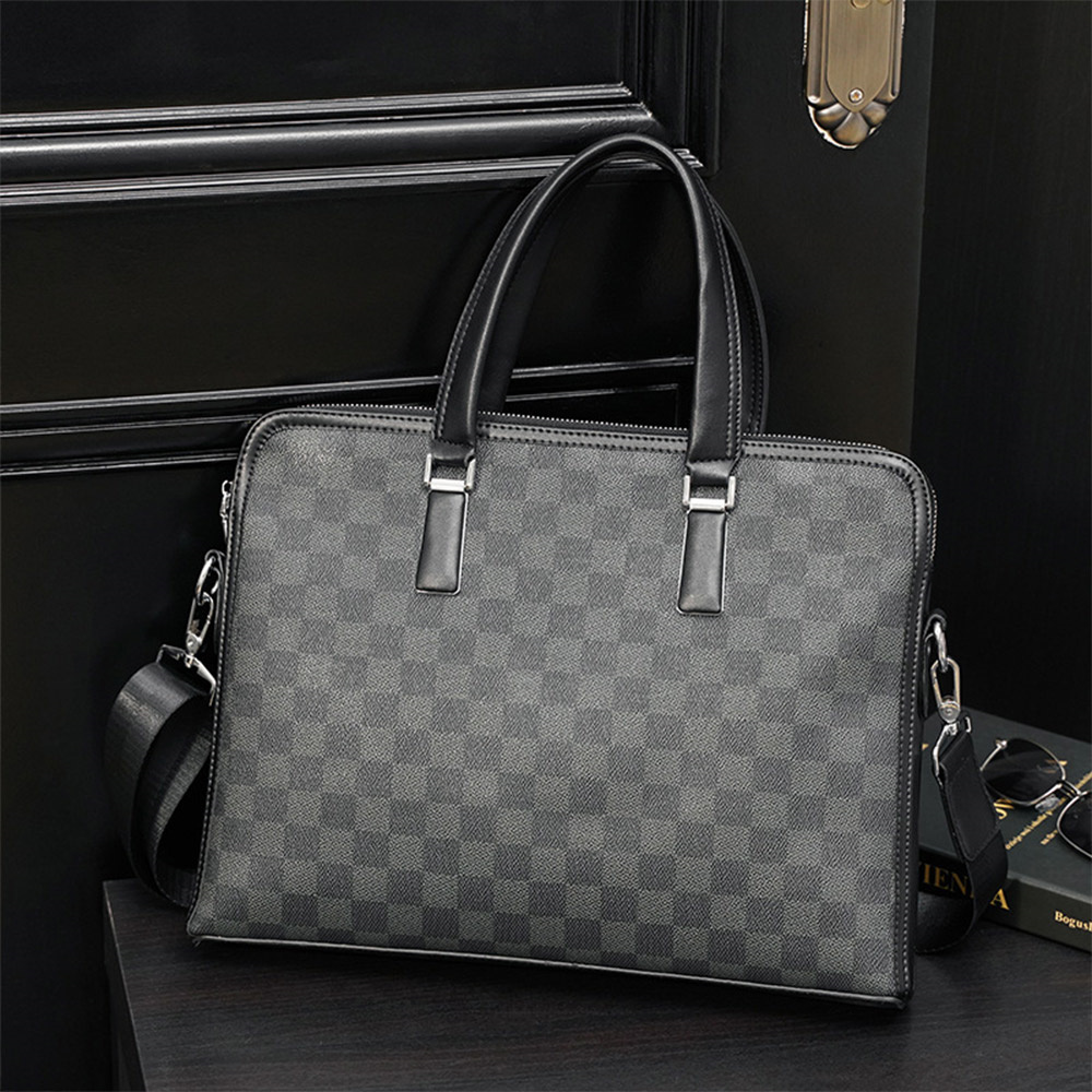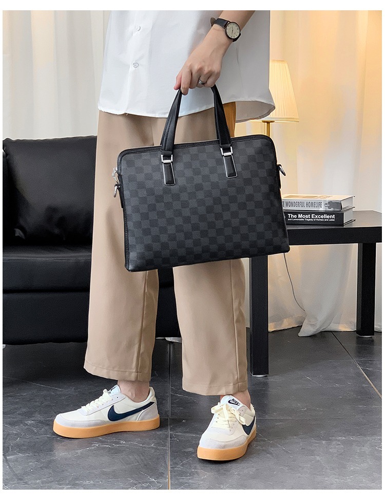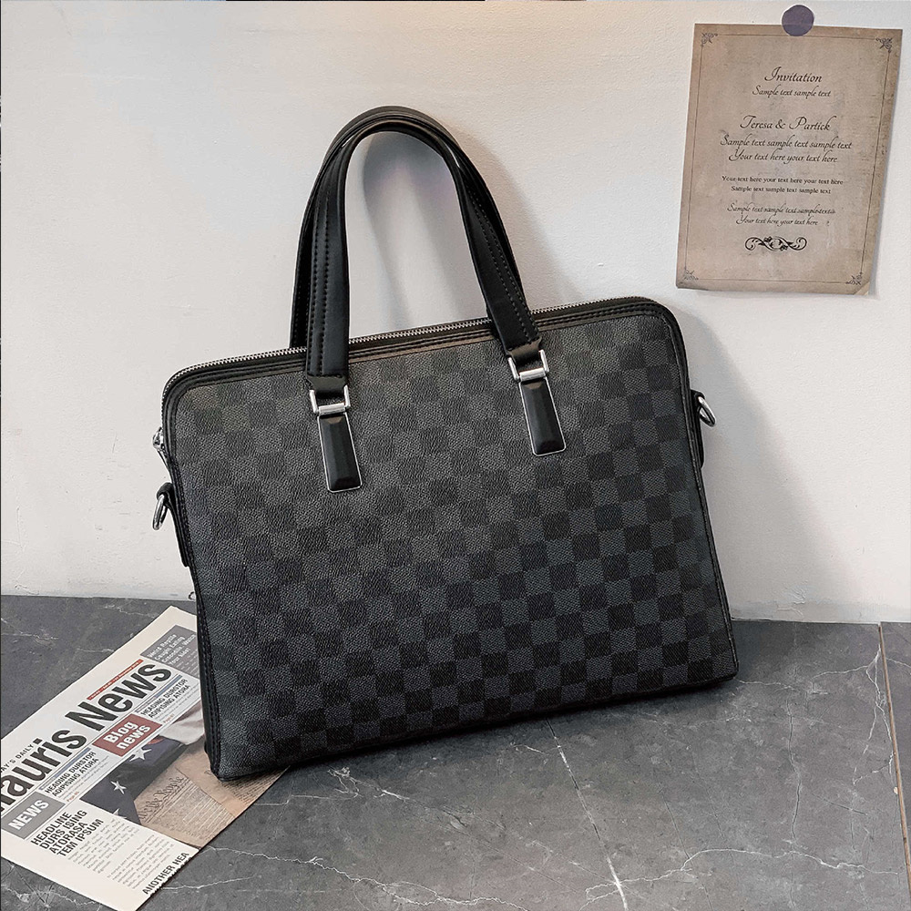 側背包 男生包包 斜背包 商務公事包 手提包 格子包包 棋盤格包包 手提電腦包 皮革包包 黑色包包 男生生日禮物 271