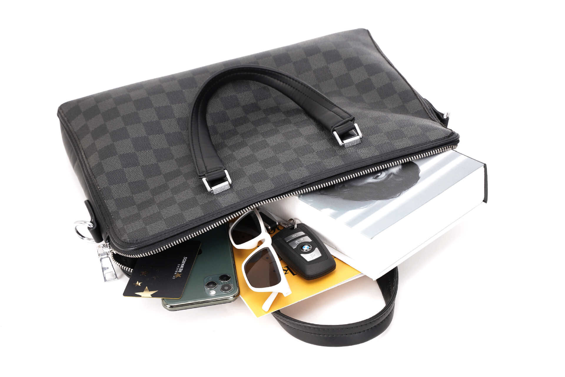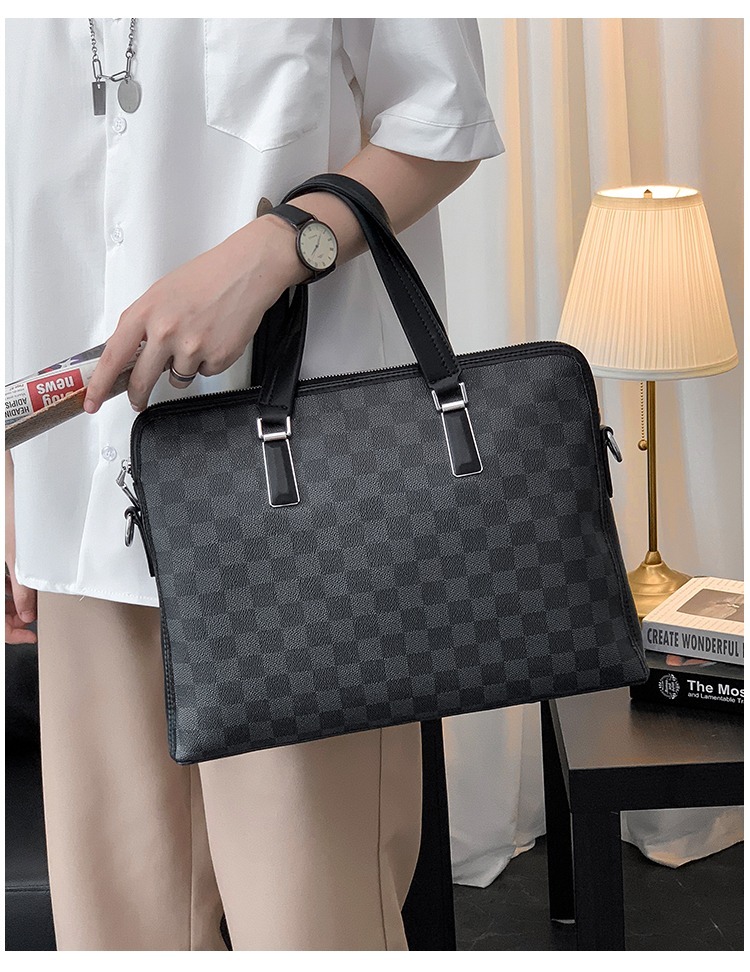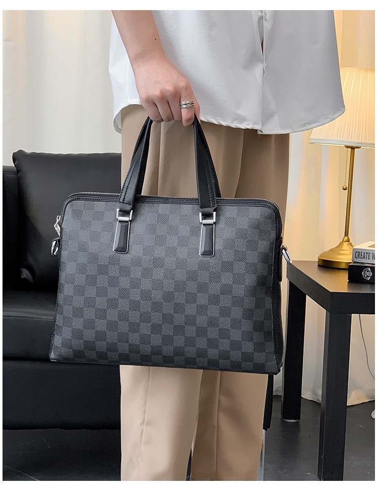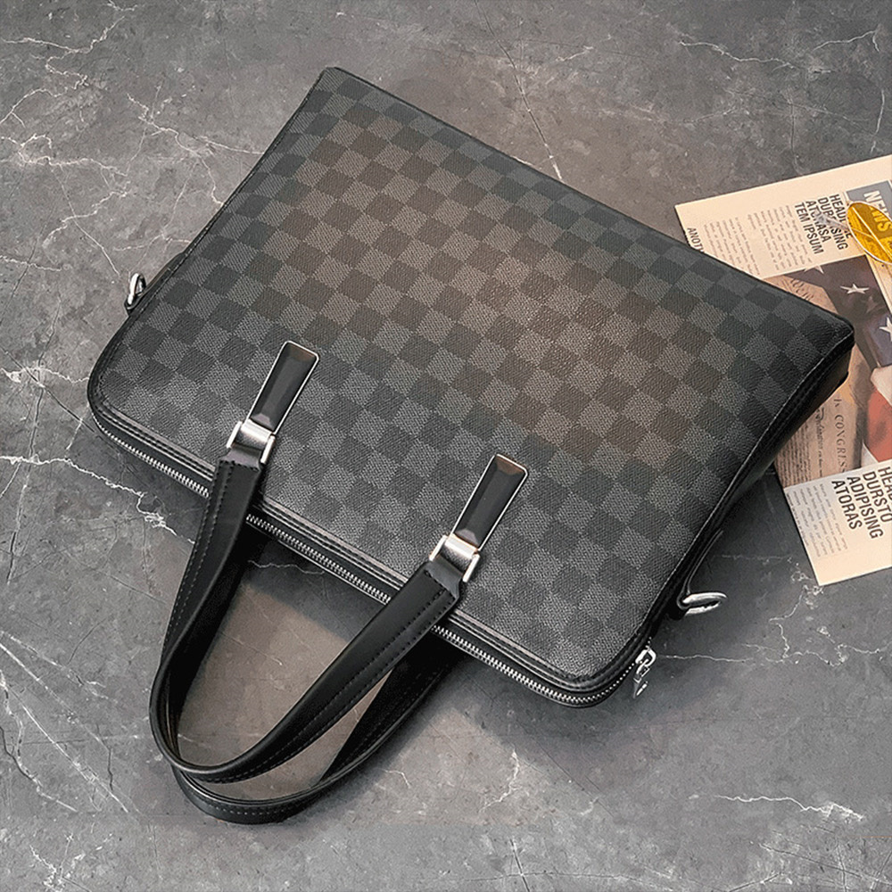 側背包 男生包包 斜背包 商務公事包 手提包 格子包包 棋盤格包包 手提電腦包 皮革包包 黑色包包 男生生日禮物 271