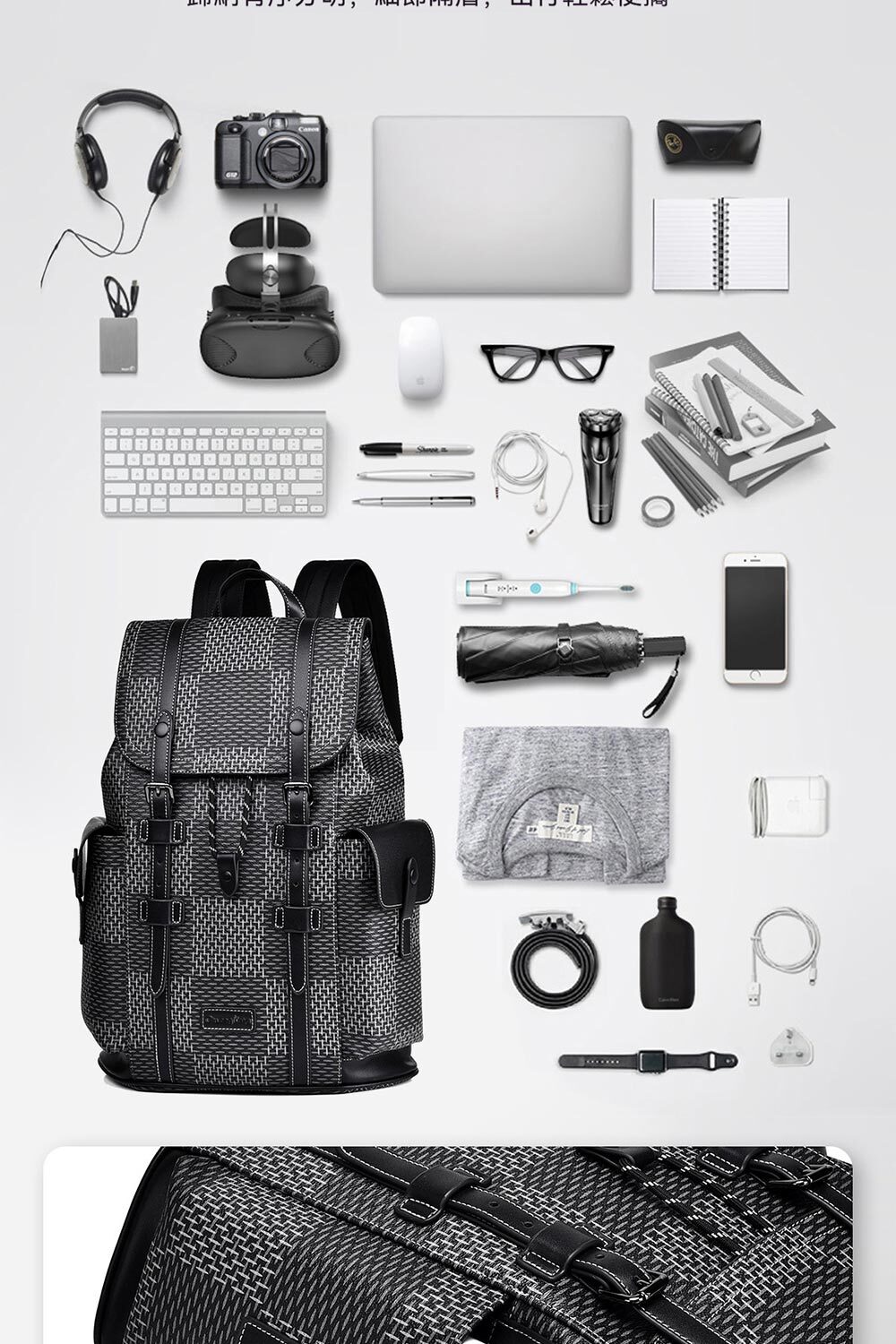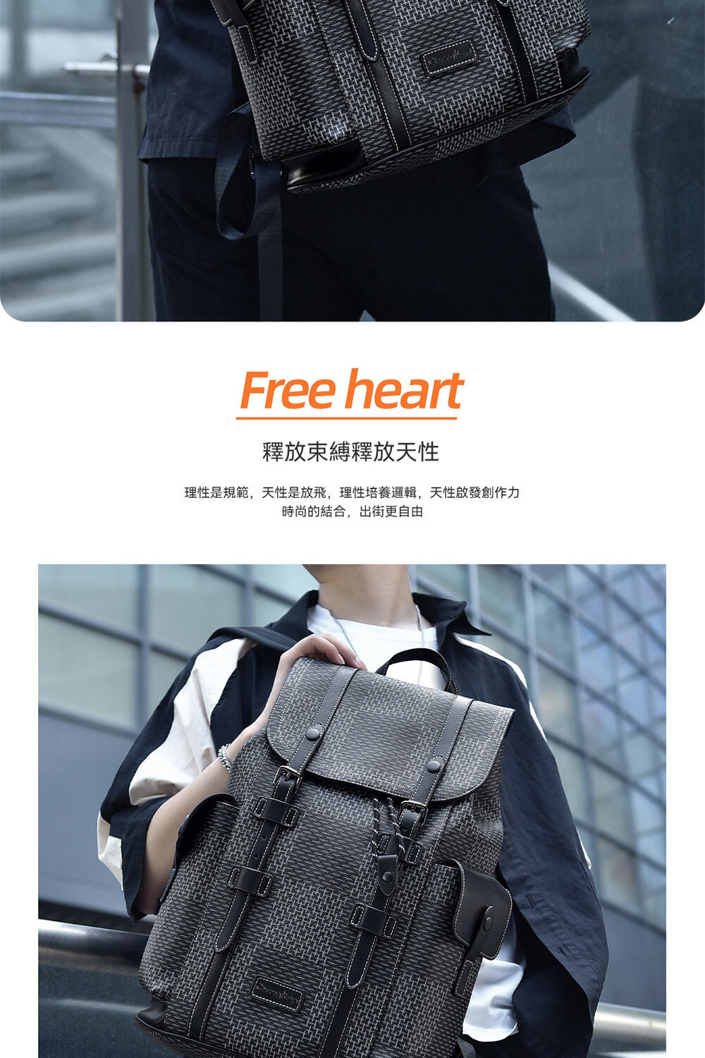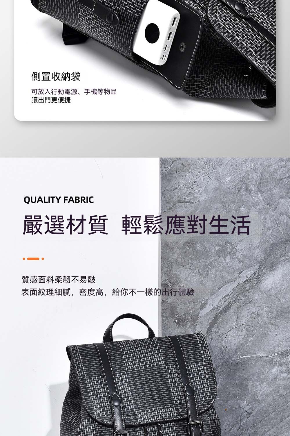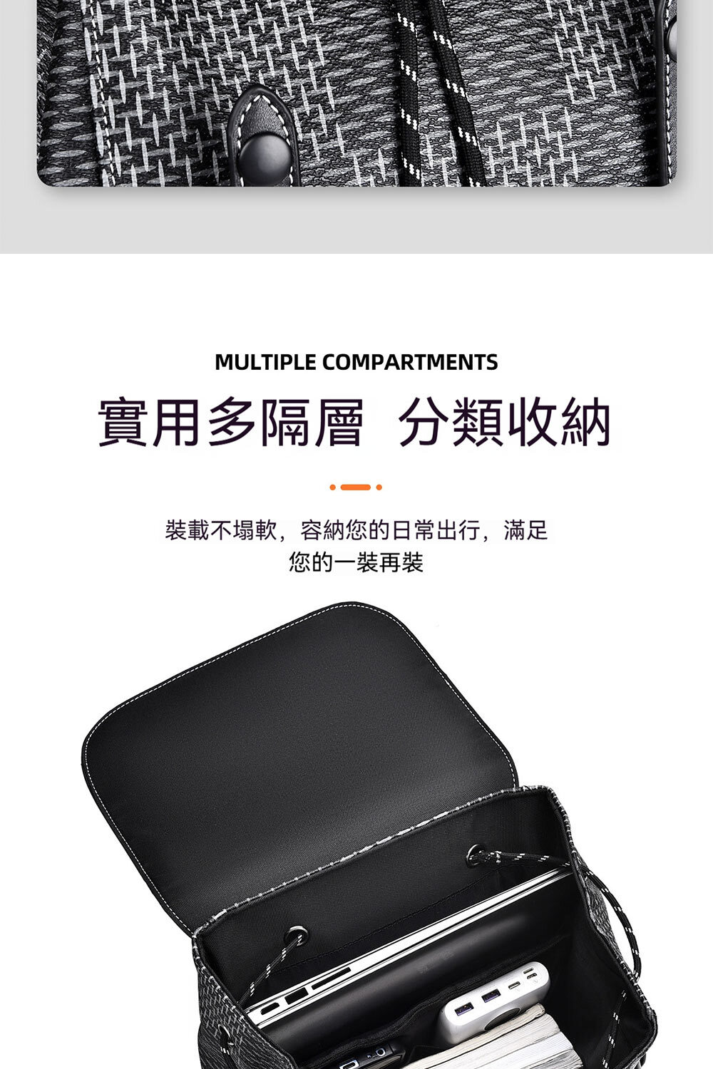 👜結構:主袋、內貼袋*3、緩重隔層、兩側口蓋壓扣袋