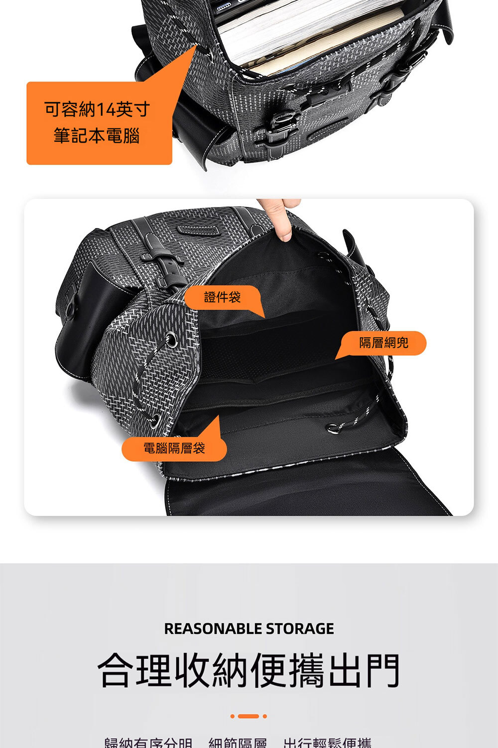 👜容量:可放A4、14吋筆電、長夾及其他隨身物品
