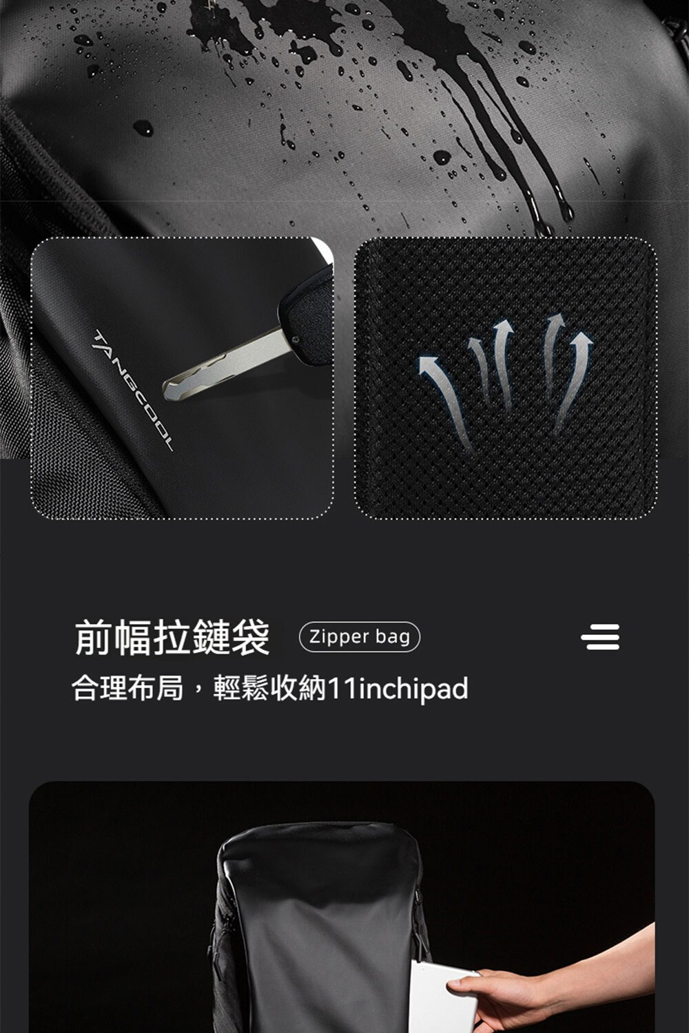 👜結構:主袋、緩衝層袋*2、副袋、網格貼袋*2、乾溼分離拉鍊袋、前置拉鍊貼袋、兩側插袋