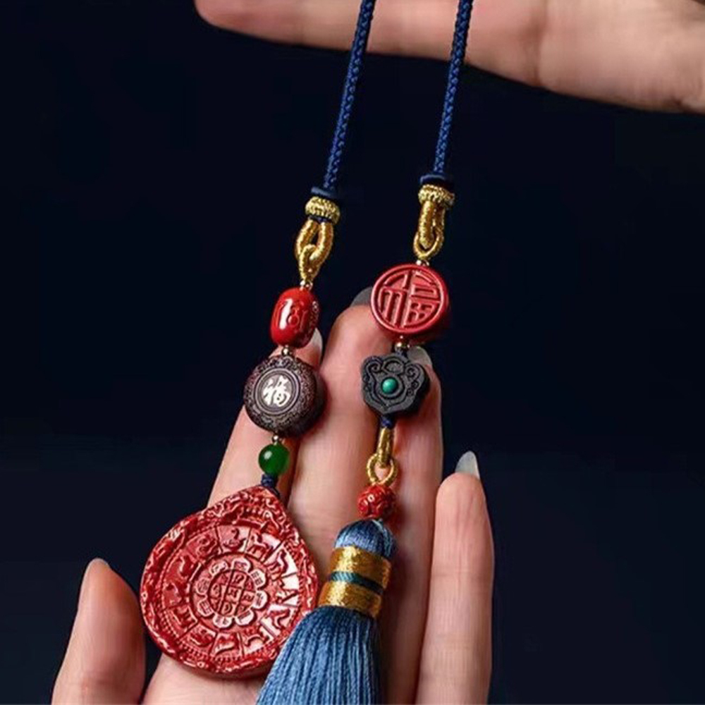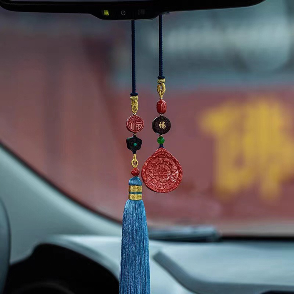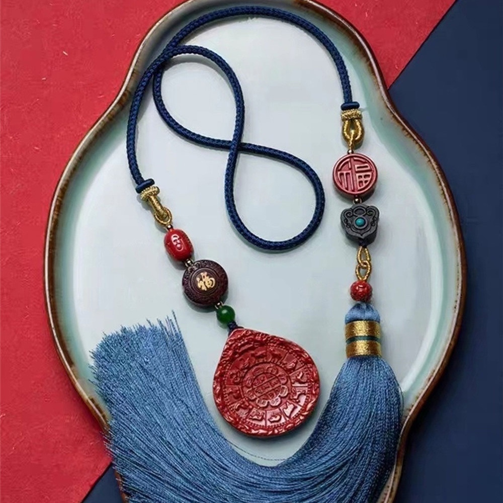 硃砂 九宮 八掛牌 掛件 吊墜 掛飾 汽車掛飾 天然硃砂 車內吊墜 吊飾 本命年 車掛 裝飾 藍色流蘇 福字吊墜 504