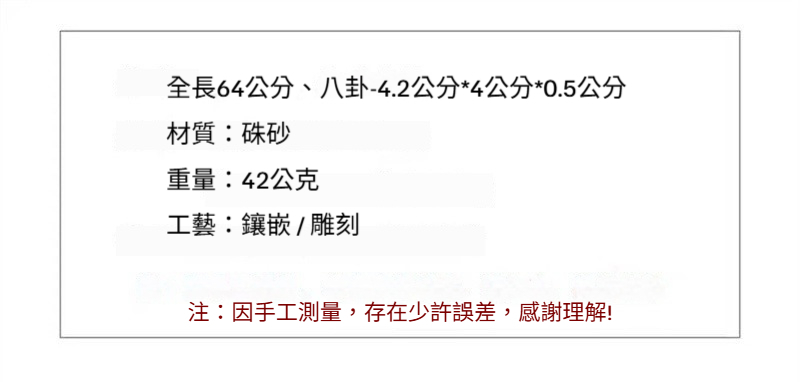 ✨ 商品尺吋:全長64公分、八卦-4.2公分*4公分*0.5公分