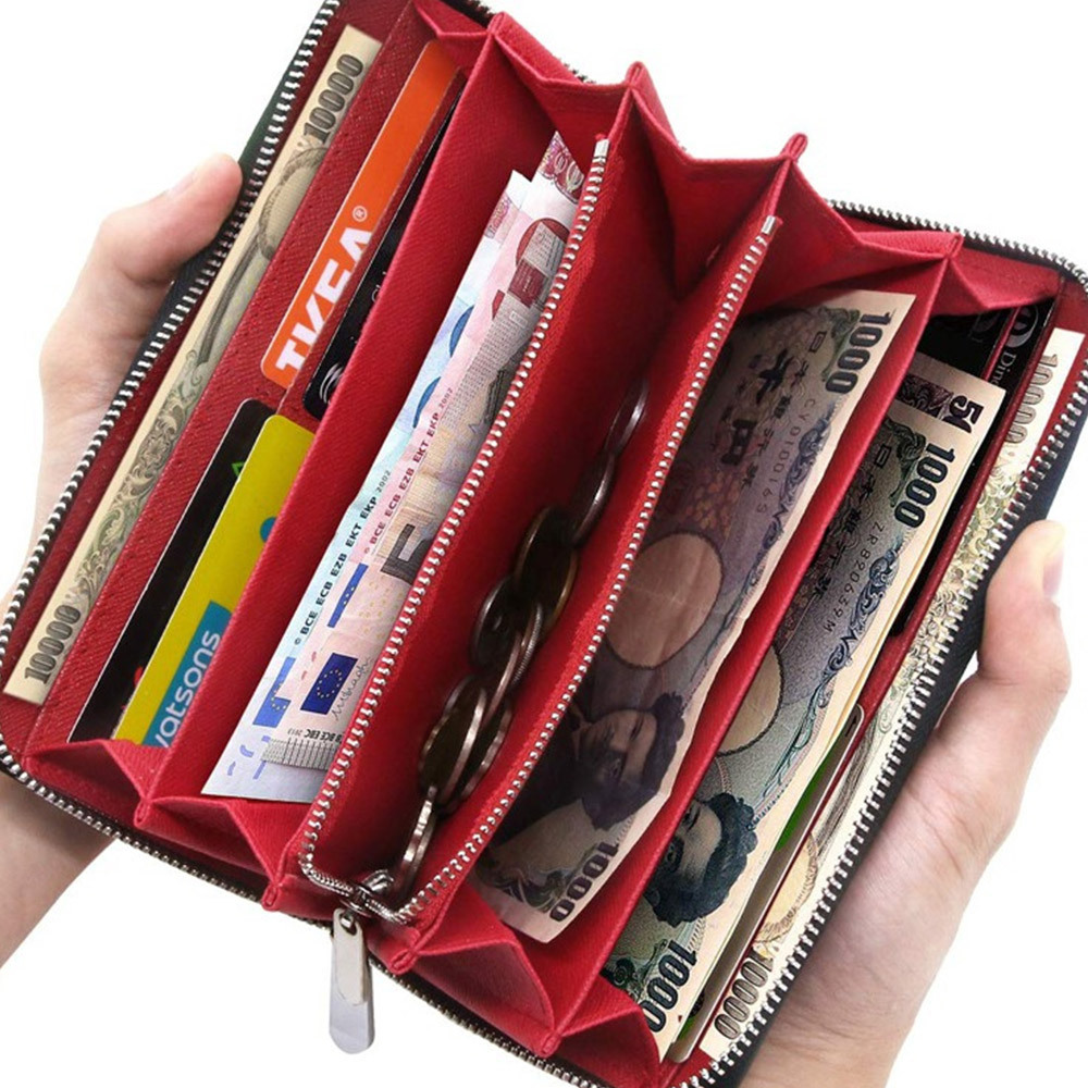 長夾女生 錢包 長夾 牛皮長夾 手拿包 真皮皮包 真皮長夾 拉鍊長夾 女士手機包 薄長夾 零錢包 紅色長夾 卡包 089