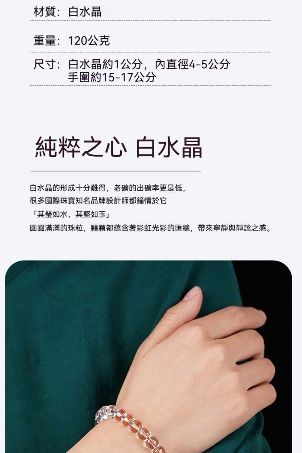 👜 商品尺吋:白水晶約1公分,內直徑4-5公分,手圍約15-17公分