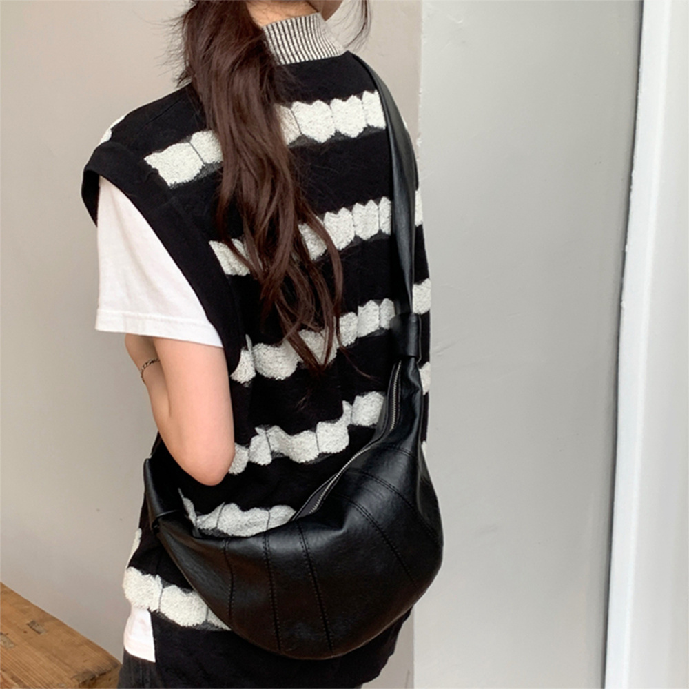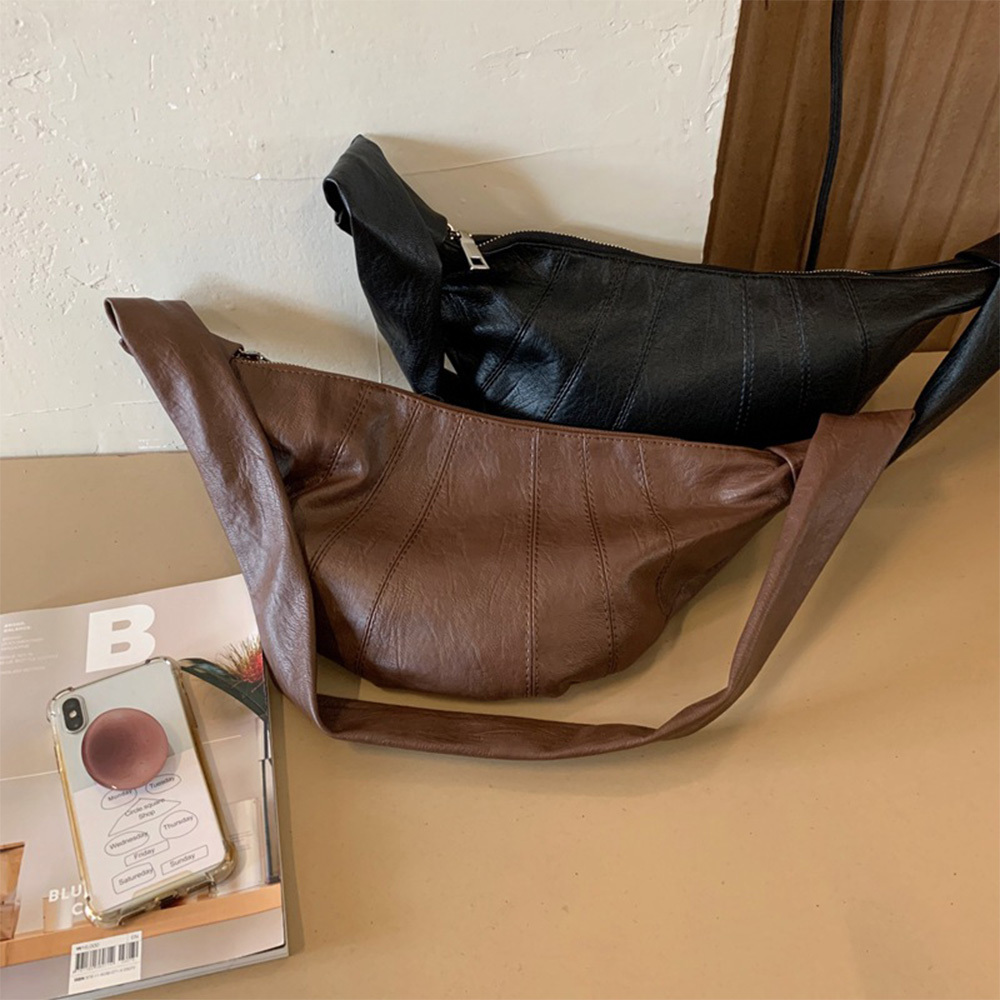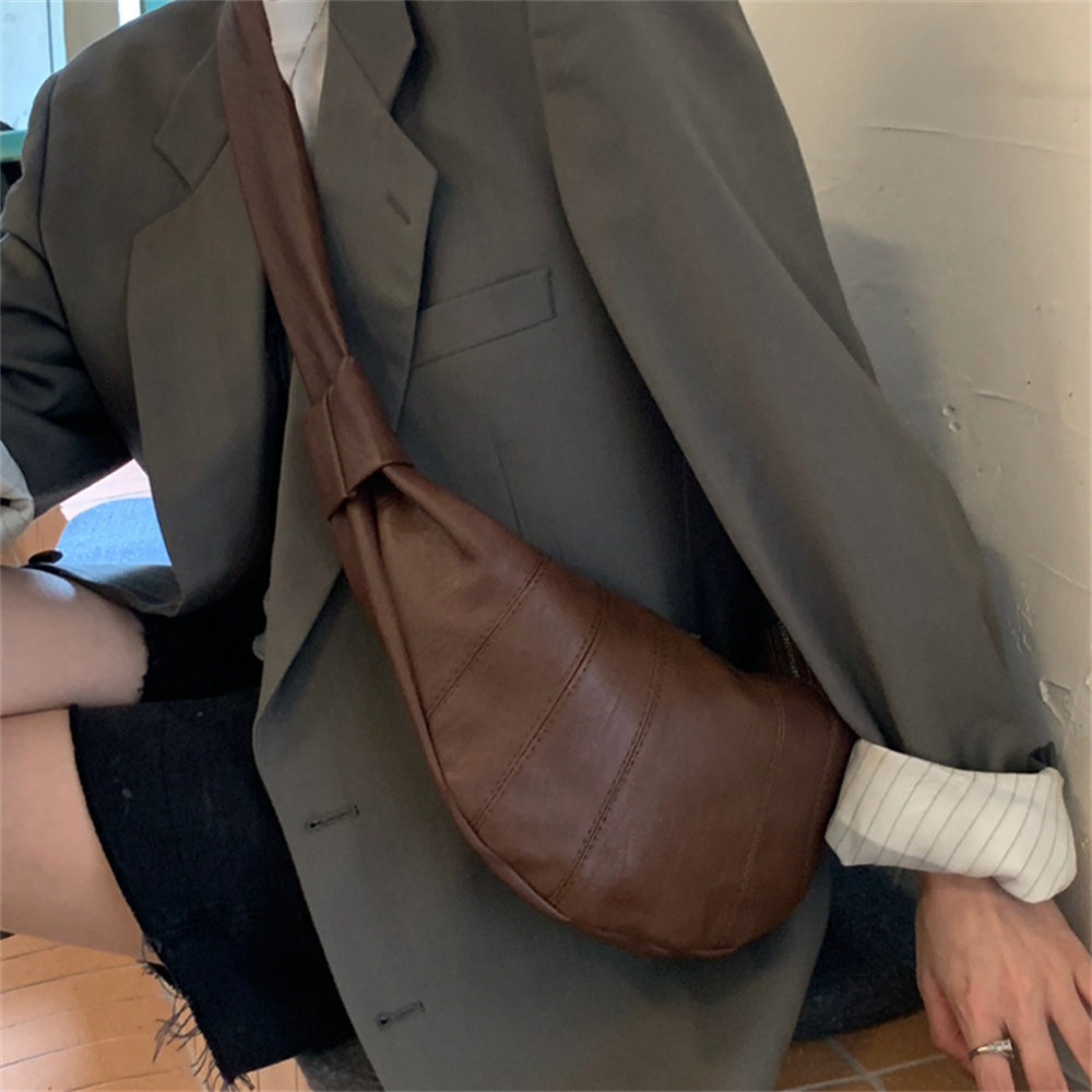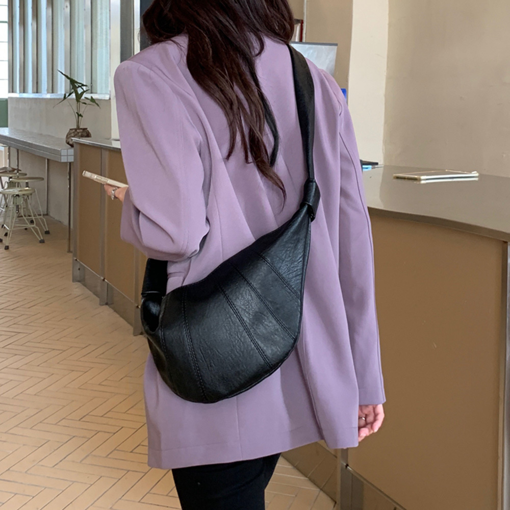 包包女 黑色包包 餃子包 牛角包 肩背包 斜背包 斜挎包 2022新款 復古 高級感 腰包 休閒單肩包 日系包包 299