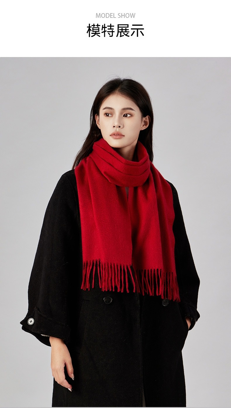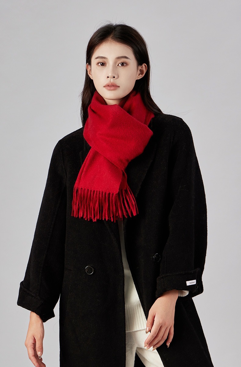 圍巾 披肩 山羊絨圍巾 純色圍巾 女生圍巾 羊絨圍巾 流蘇圍巾 圍脖 加厚圍巾 紅色圍巾 親膚圍巾 保暖披巾 038
