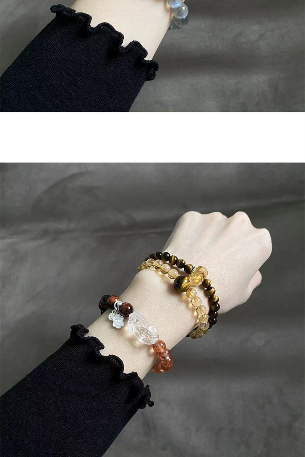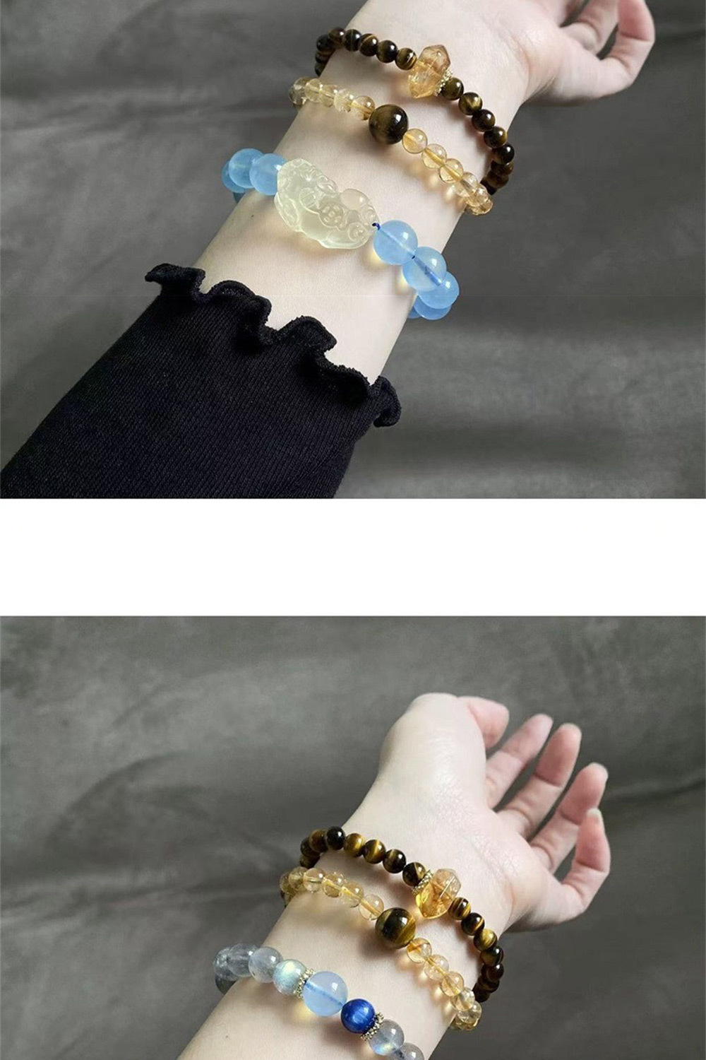 ✨ 材質:虎眼石、黃水晶
