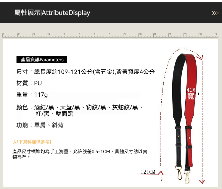 👜商品尺吋:總長度約109-121公分(含五金),背帶寬度4公分