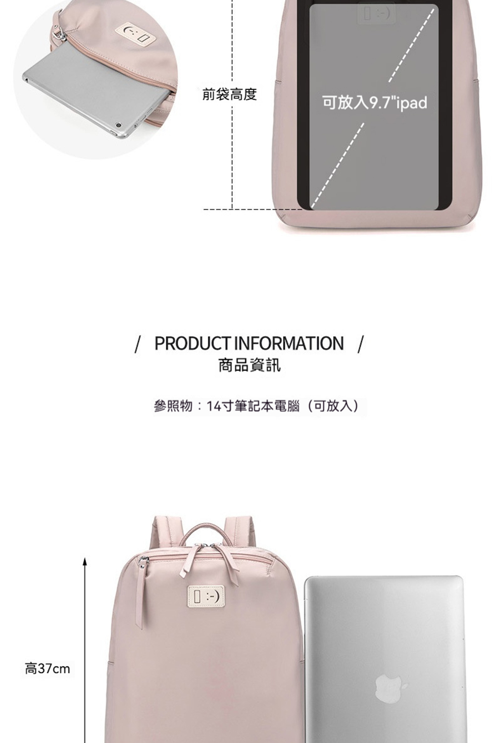 👜容量:可放14吋筆電、A4、iPad、長夾及其他隨身物品