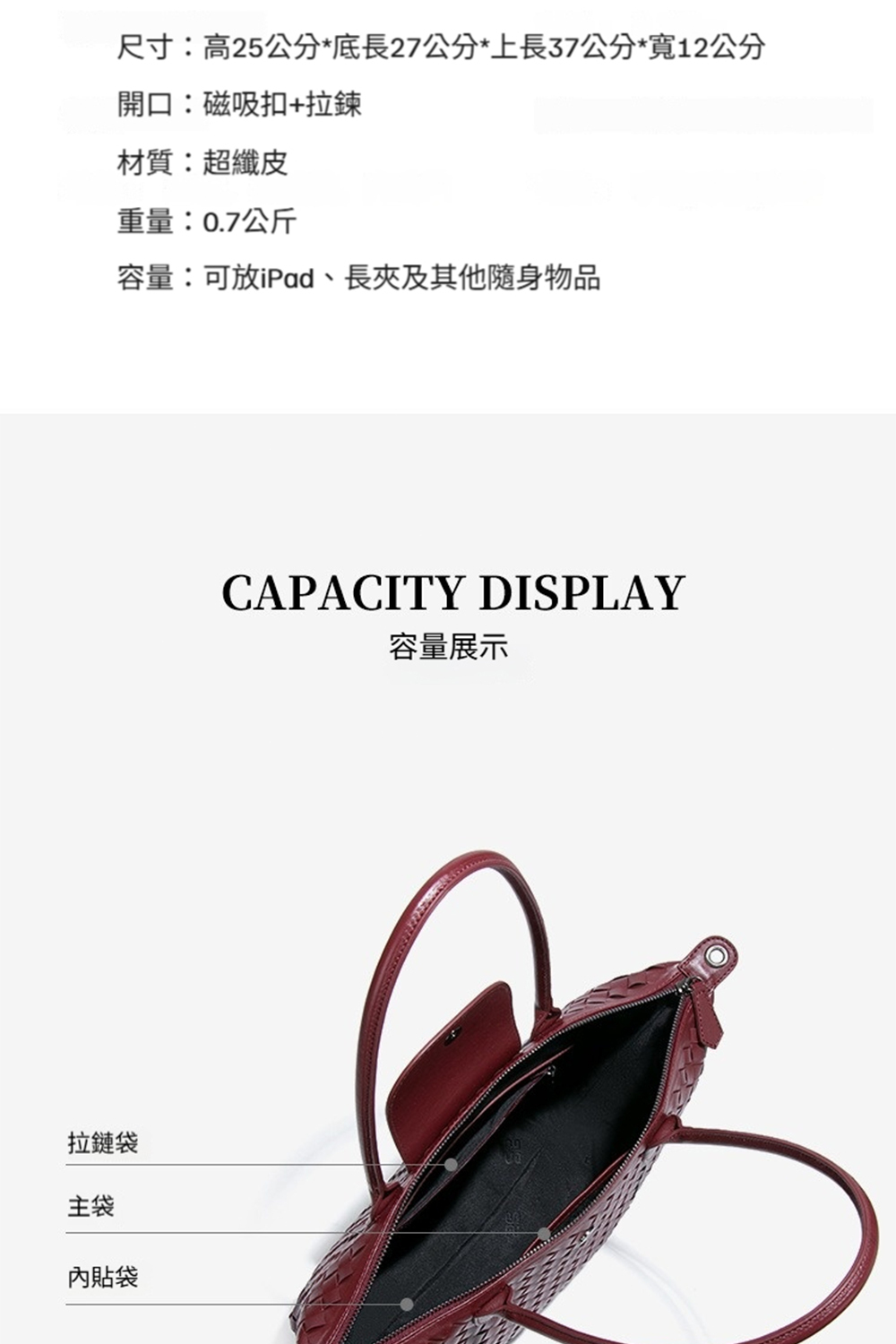 👜結構:主袋、拉鍊內貼袋、內貼袋