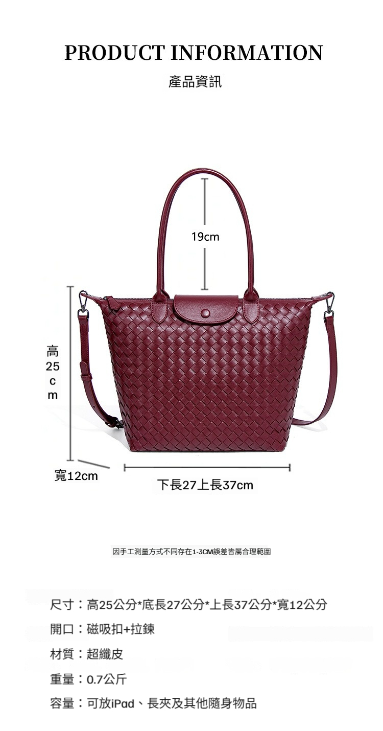 👜尺寸:高25公分*底長27公分*上長37公分*寬12公分