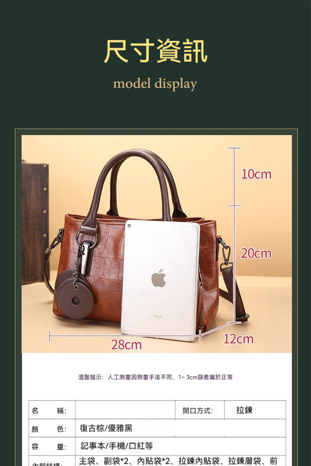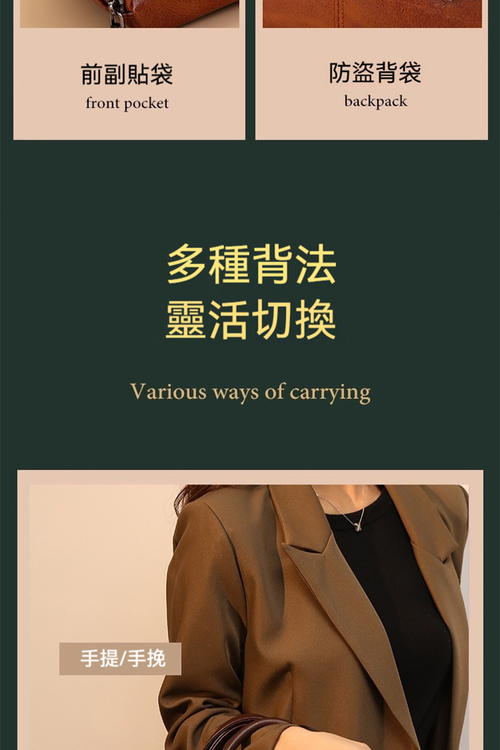 👜結構:主袋、副袋*2、內貼袋*2、拉鍊內貼袋、拉鍊層袋、前副貼袋、防盜背袋(附背帶)