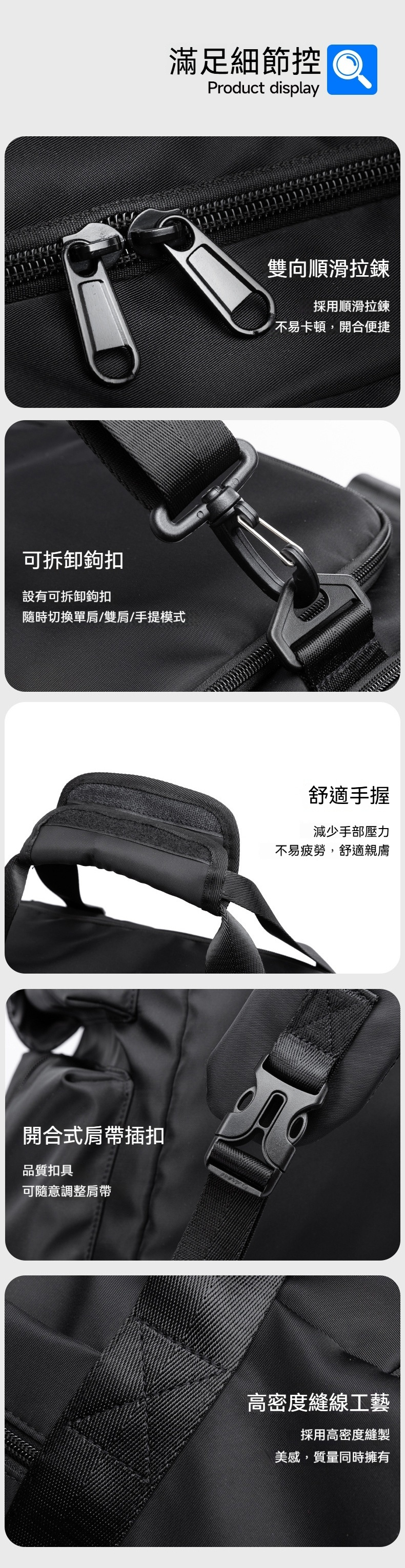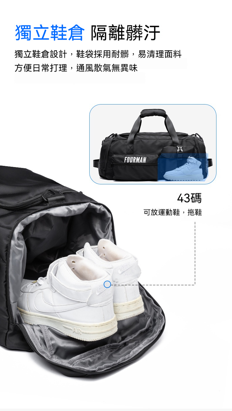 👜結構:主袋、後拉鍊袋、下拉鍊袋、上鞋艙袋、側拉鍊袋*2