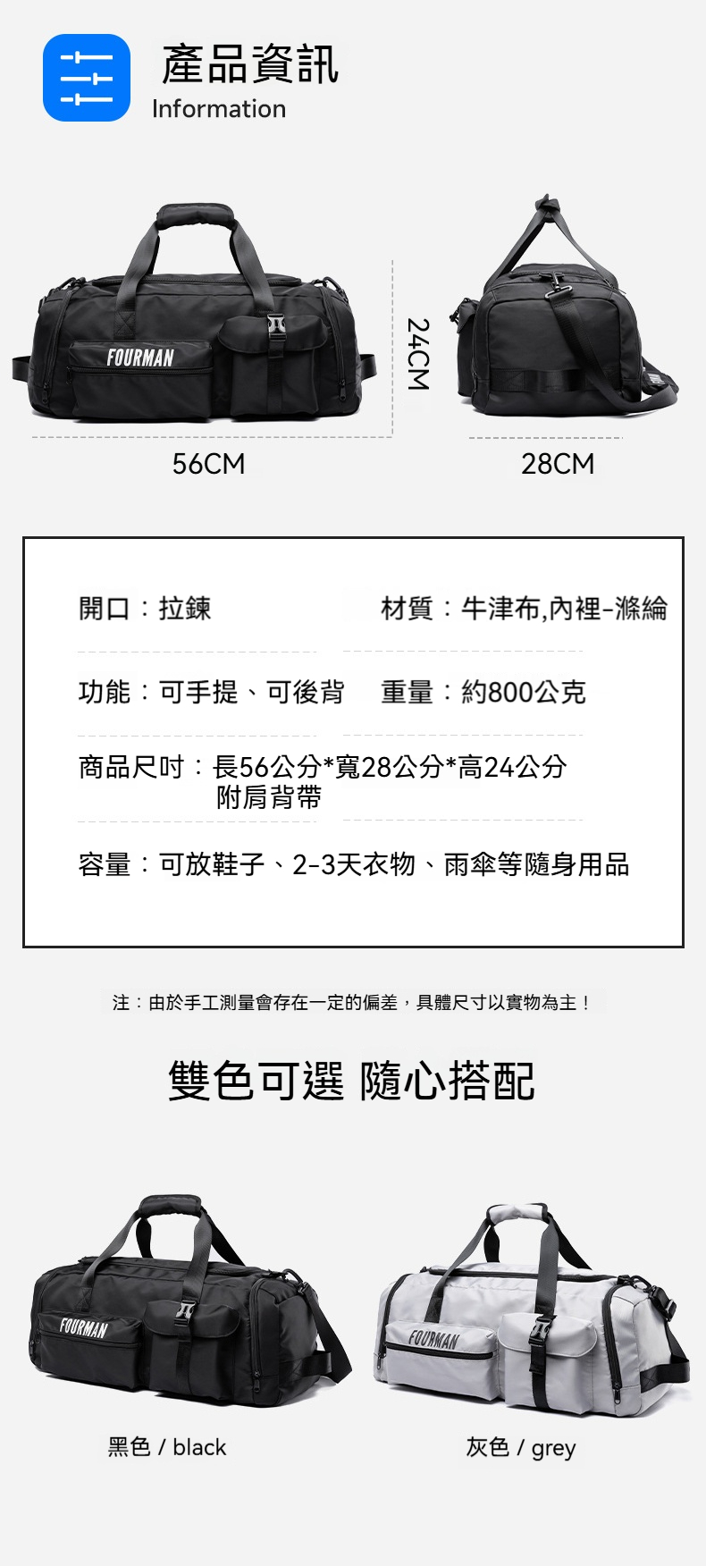 👜容量:可放鞋子、2-3天衣物、雨傘等隨身用品