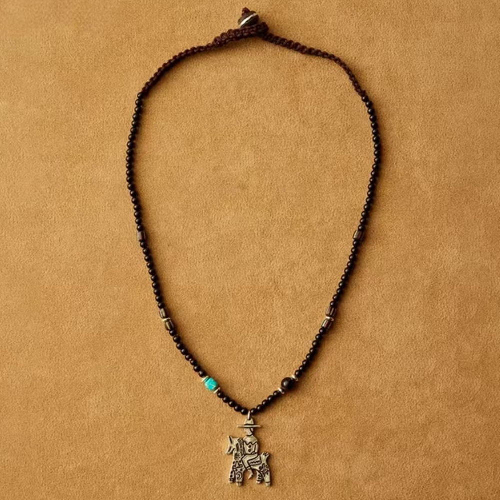 ✨ 材質:電鍍古銀+黑瑪瑙+琉璃+棉繩+綠松石+烏木