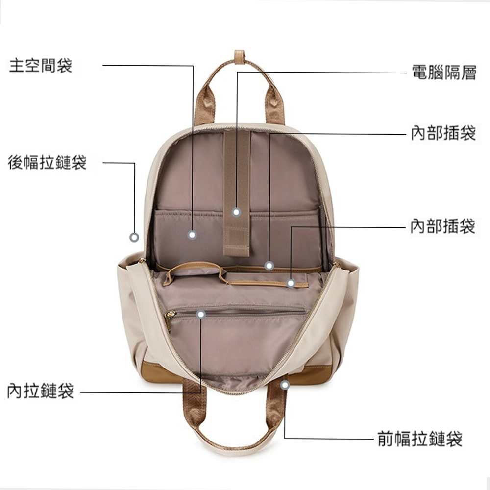 👜結構:主袋、緩衝袋、內貼袋*4、拉鍊內貼袋、前幅拉鍊袋、前幅磁吸袋、後幅拉練貼袋、兩側插袋