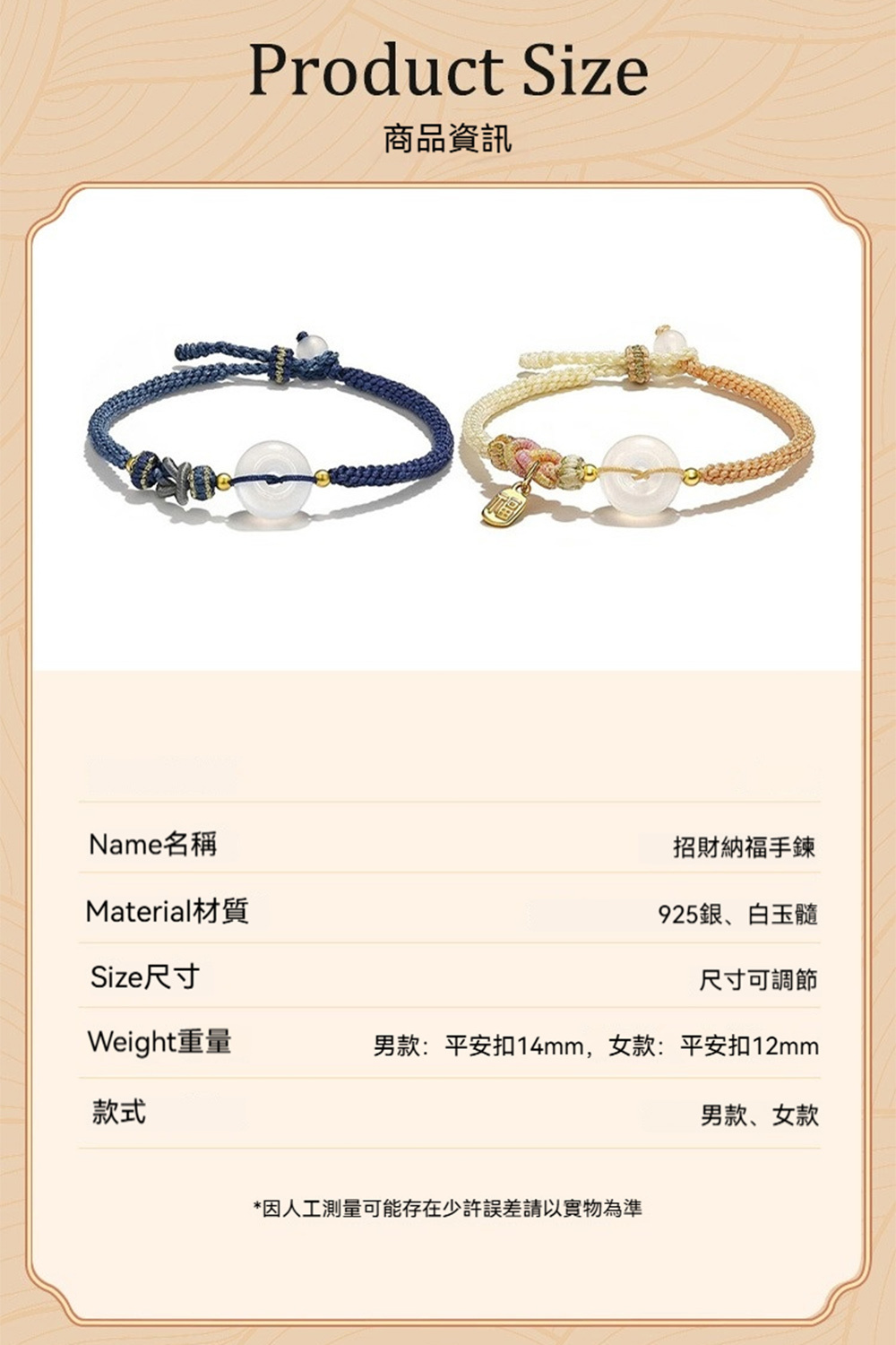 👜 商品尺吋:男款:平安扣14mm,女款:平安扣12mm