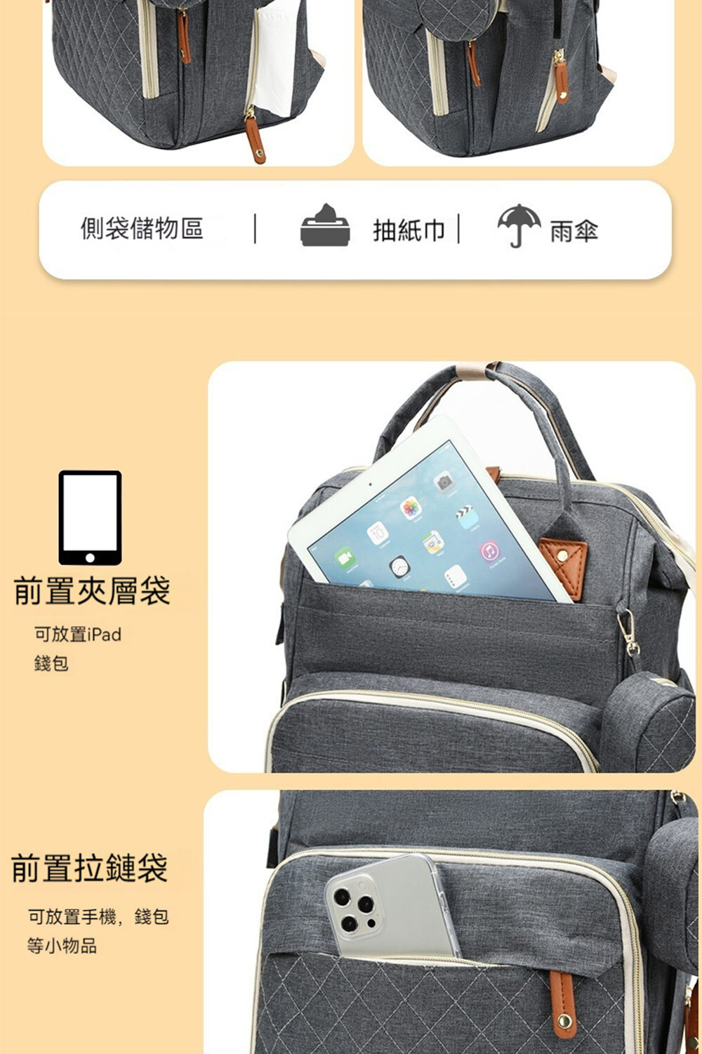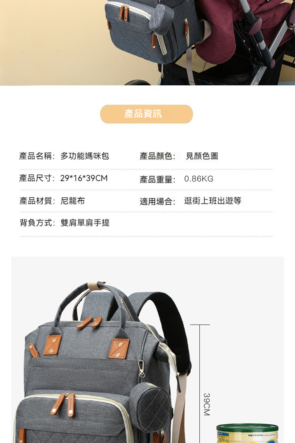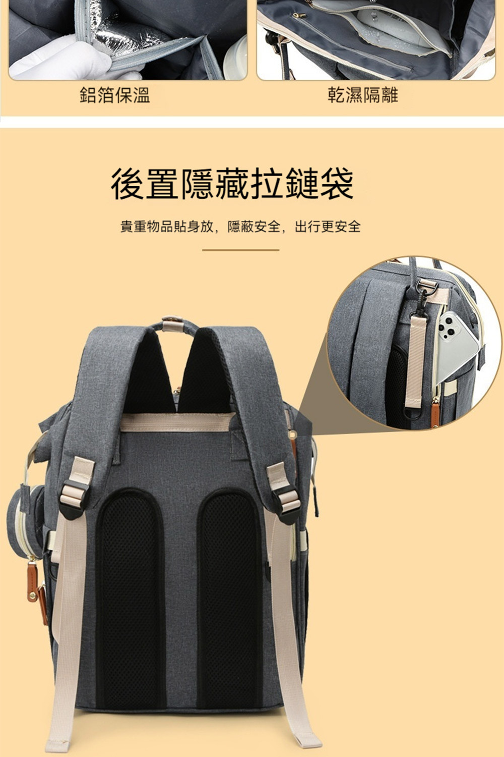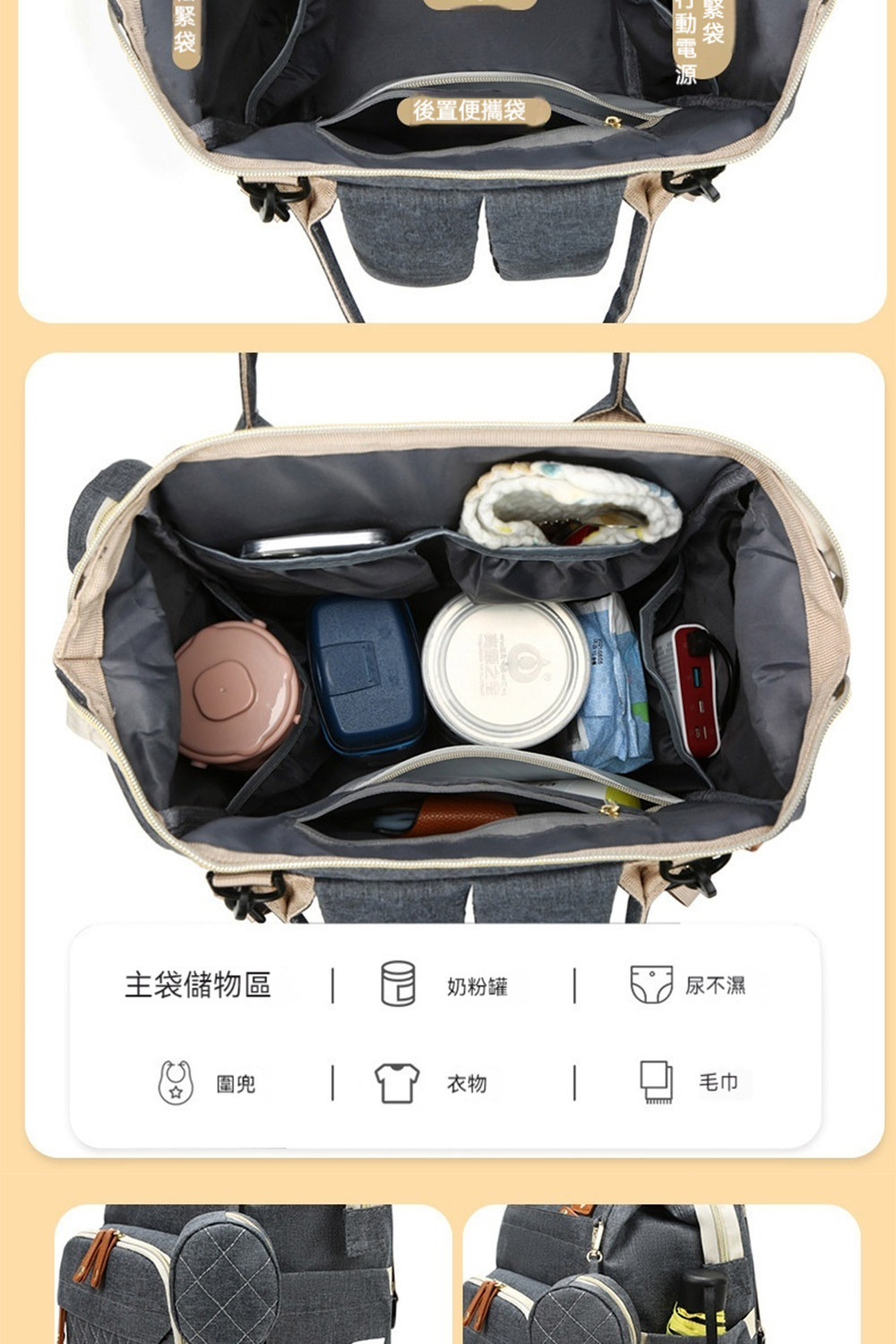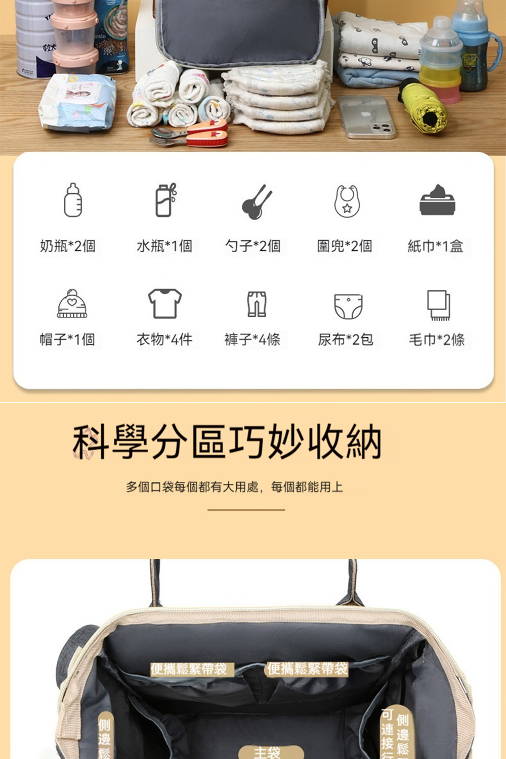 👜結構:主袋、內貼袋*2、側邊內插袋*2、拉鍊內貼袋、乾溼分離拉鍊內貼袋、前幅拉鍊袋*2、前置拉鍊袋(保溫保冰插袋*3)、兩側插袋、後幅拉練貼袋、推車掛帶、小零錢包