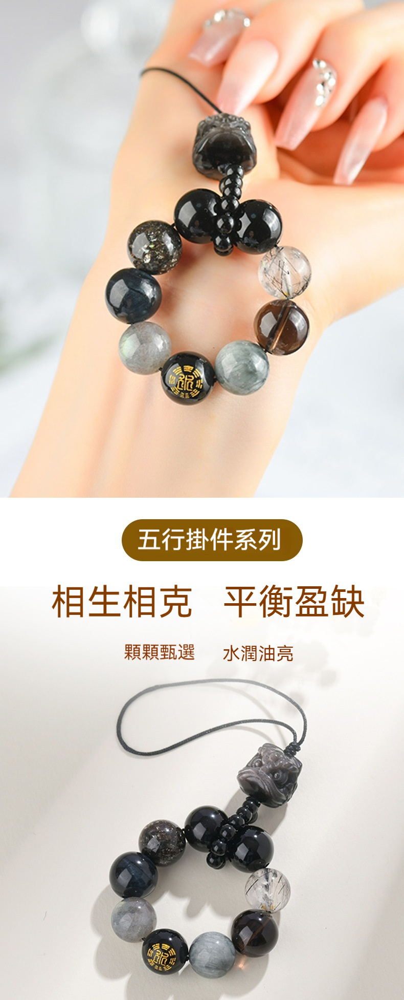 水 - 銀曜石、黑瑪瑙、黑髮晶、茶晶、鷹眼石、灰月光、藍虎眼、黑閃靈