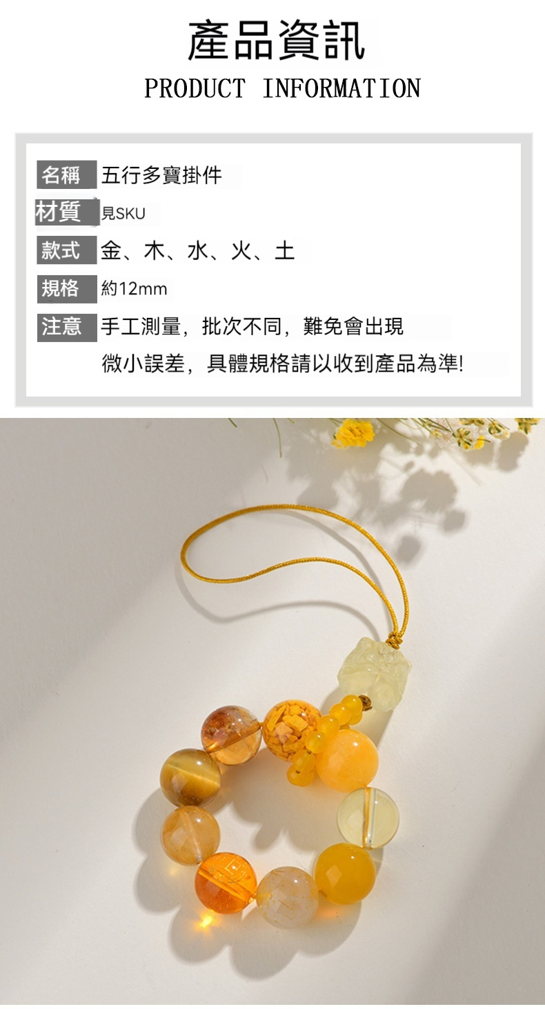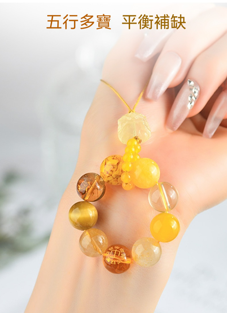 土 - 黃水晶、老黃玉、黃瑪瑙、金髮晶、黃膠花、黃虎眼、黃塔晶、雄黃砂