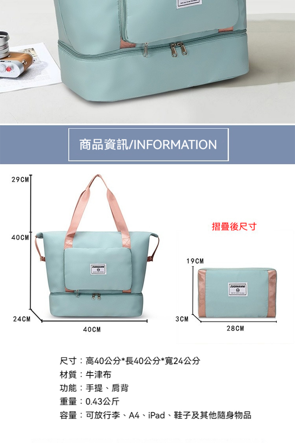 👜容量:可放行李、A4、iPad、鞋子及其他隨身物品