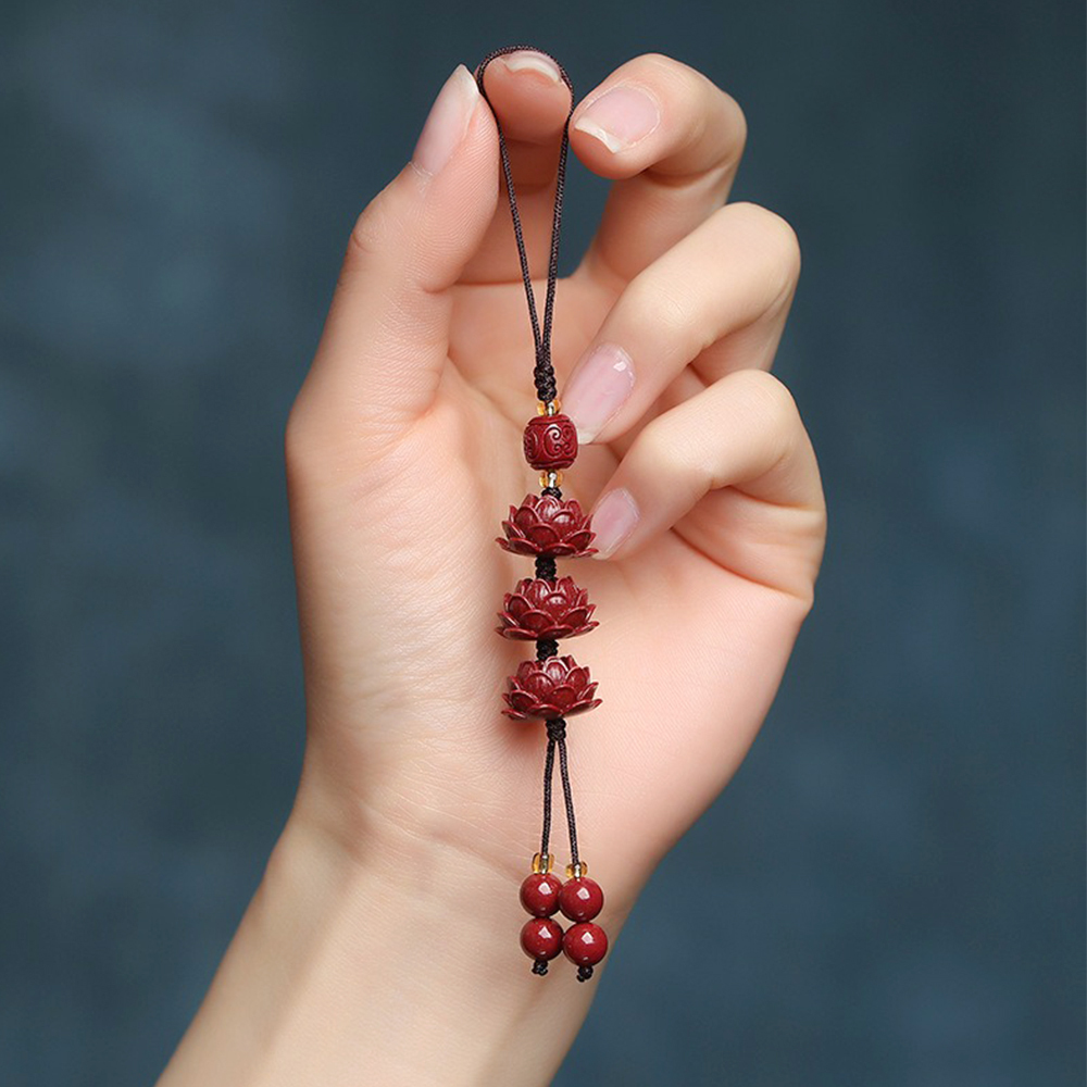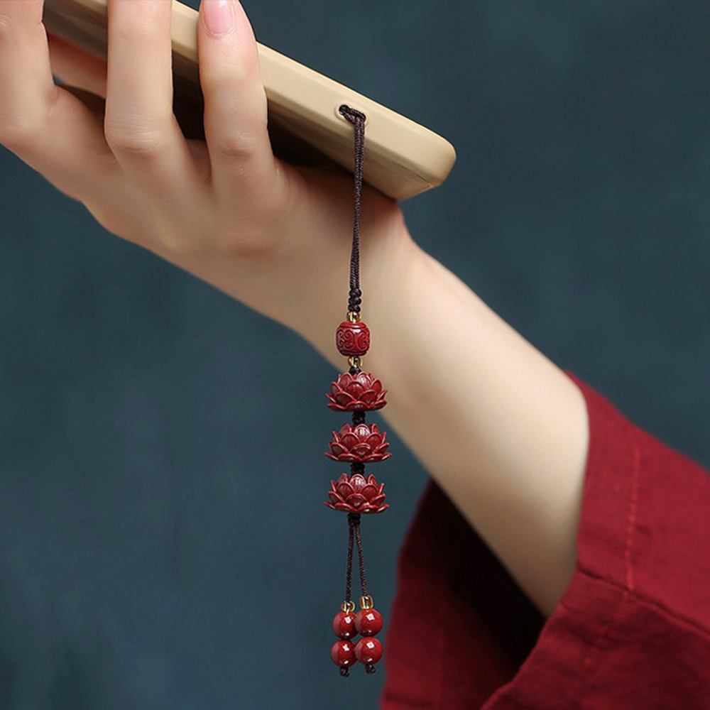 硃砂 飾品 手機掛件 蓮花吊飾 吊墜 男女通用 如意 護身符 辟邪手鍊 招財納福 保平安 送媽媽 生日禮物 024
