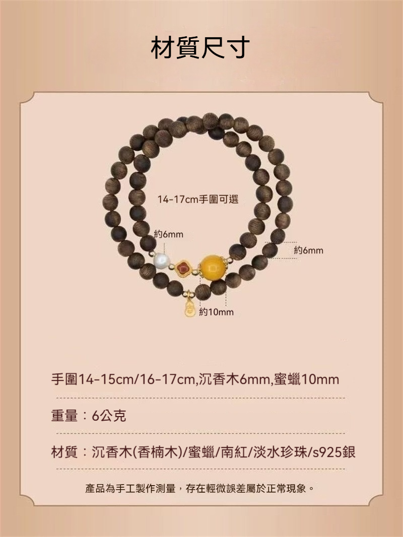 ✨ 商品尺吋:手圍14-15cm/16-17cm,沉香木6mm,蜜蠟10mm