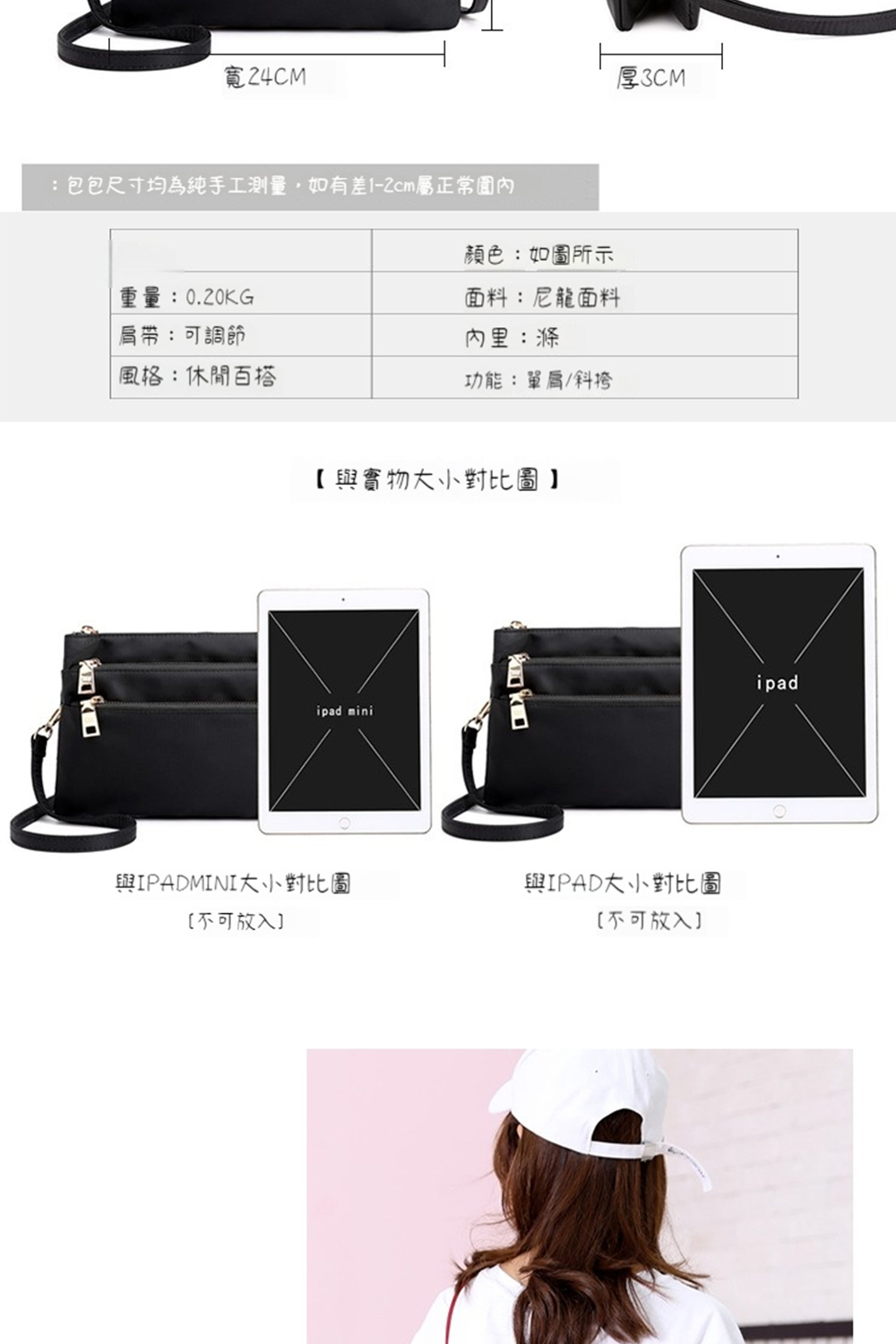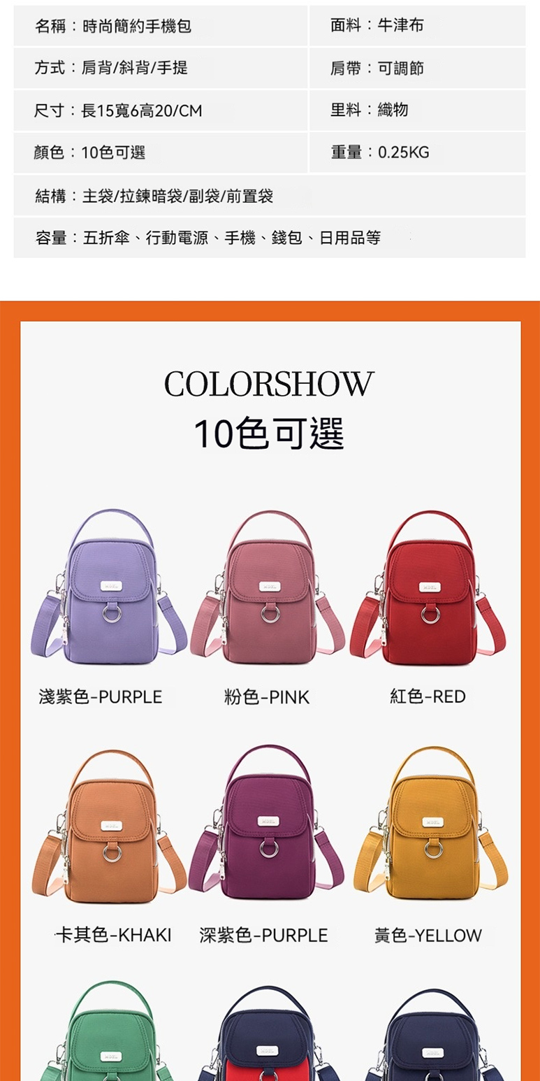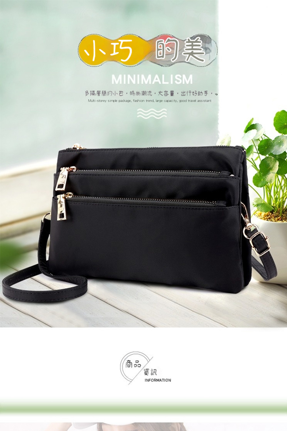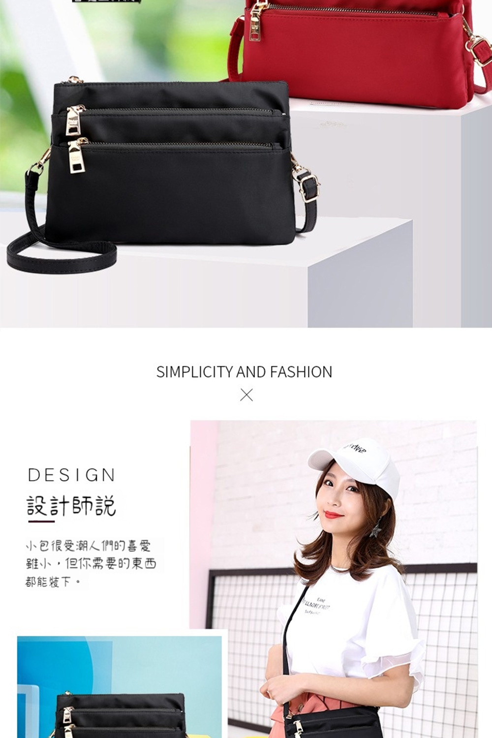 結構:主袋、拉鍊內貼袋、拉鍊口袋
