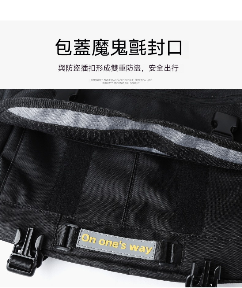 👜結構:主袋、內貼袋*2、緩衝隔層、前置魔鬼氈袋、前幅拉鍊貼袋