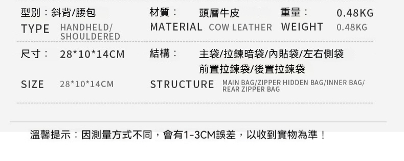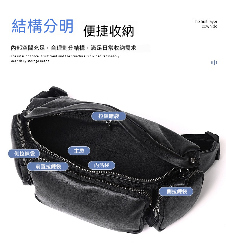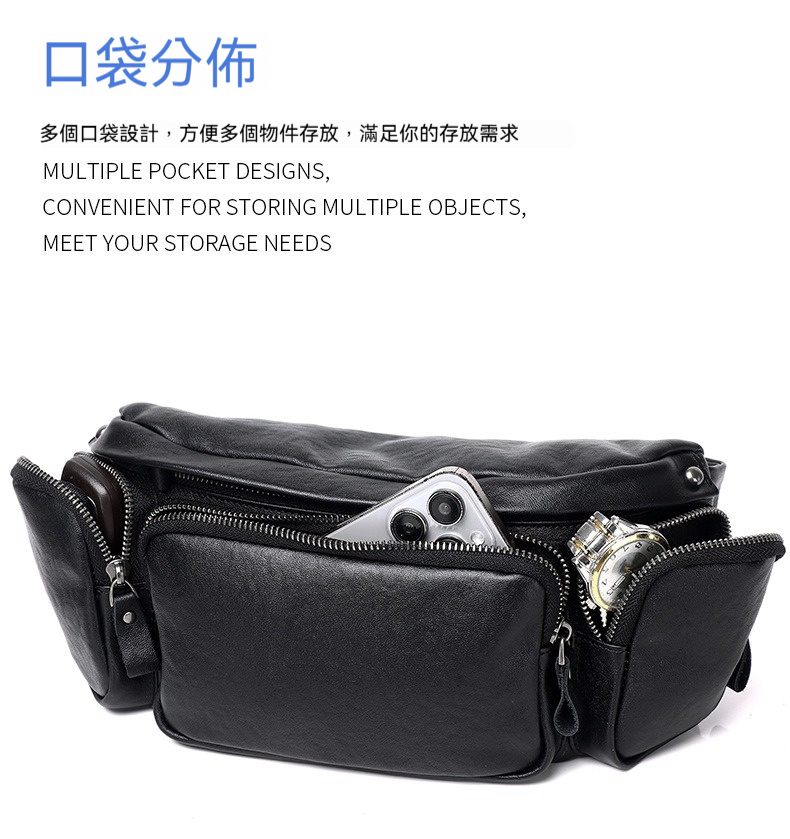 👜結構:主袋、前置拉鍊袋、側拉鍊袋*2、拉鍊暗袋、內貼袋