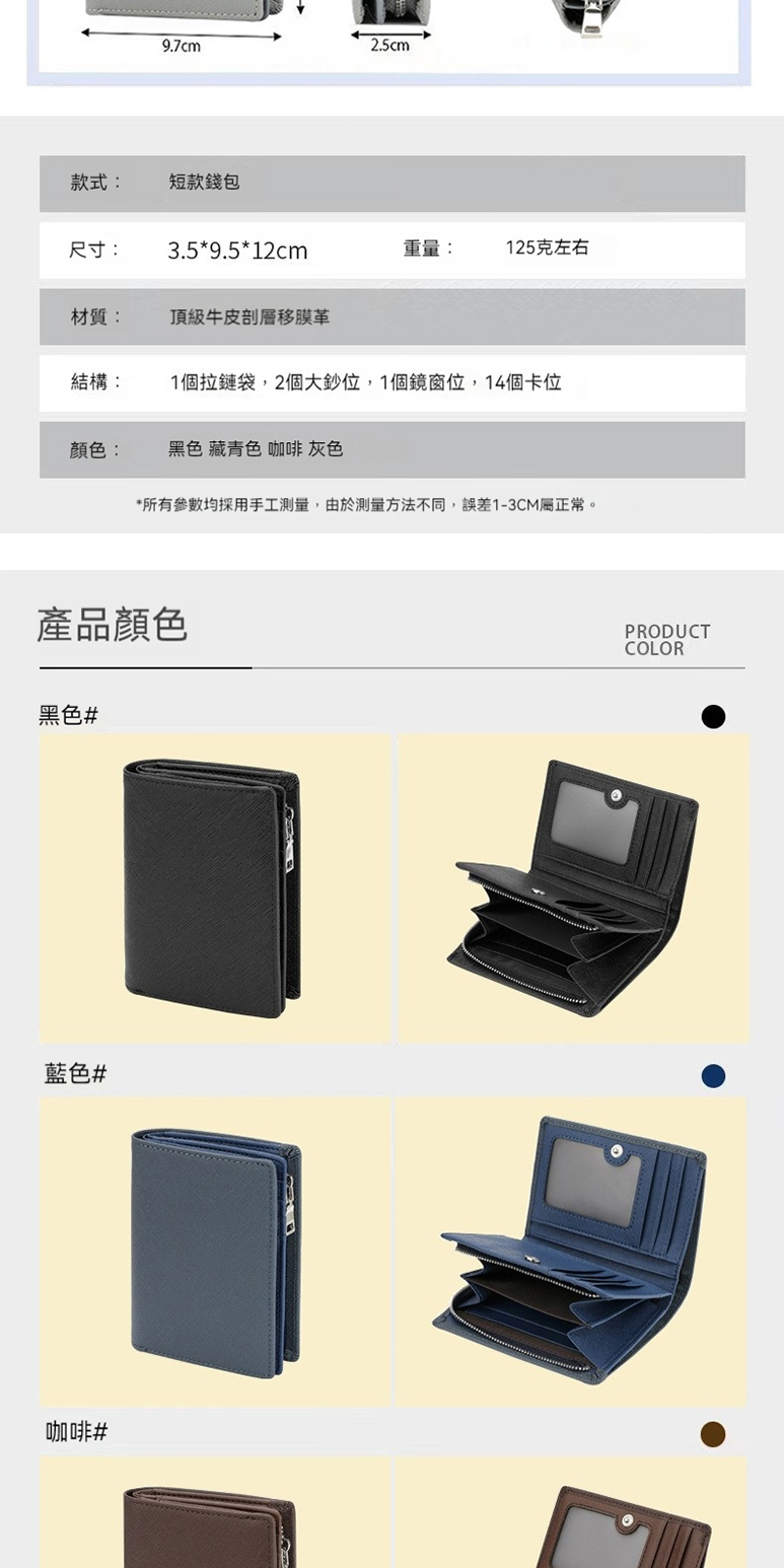 👜容量 / 結構:大鈔位*2、卡位*14、相片位*1、拉鍊零錢袋、零錢位*2