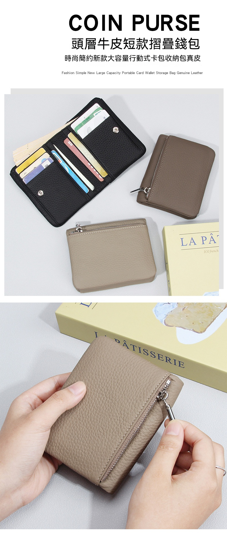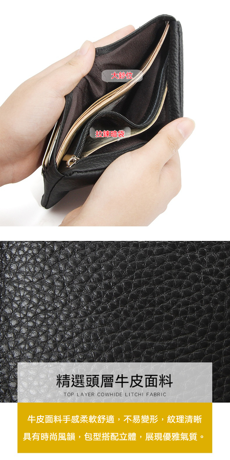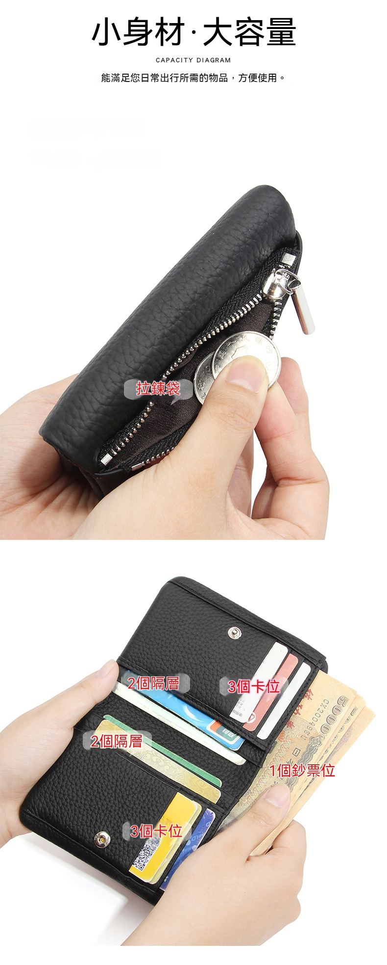 👜結構:鈔票位*1、拉鍊袋*1、卡位*6、隔層*4、零錢袋*1