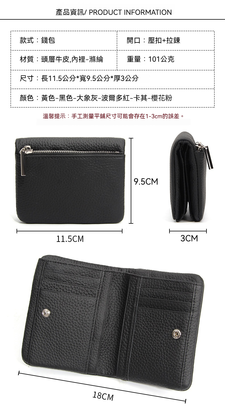 👜容量:可裝鈔票、零錢、信用卡、證件等